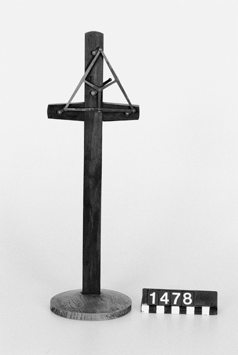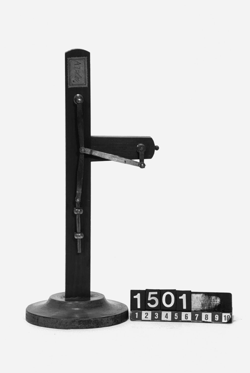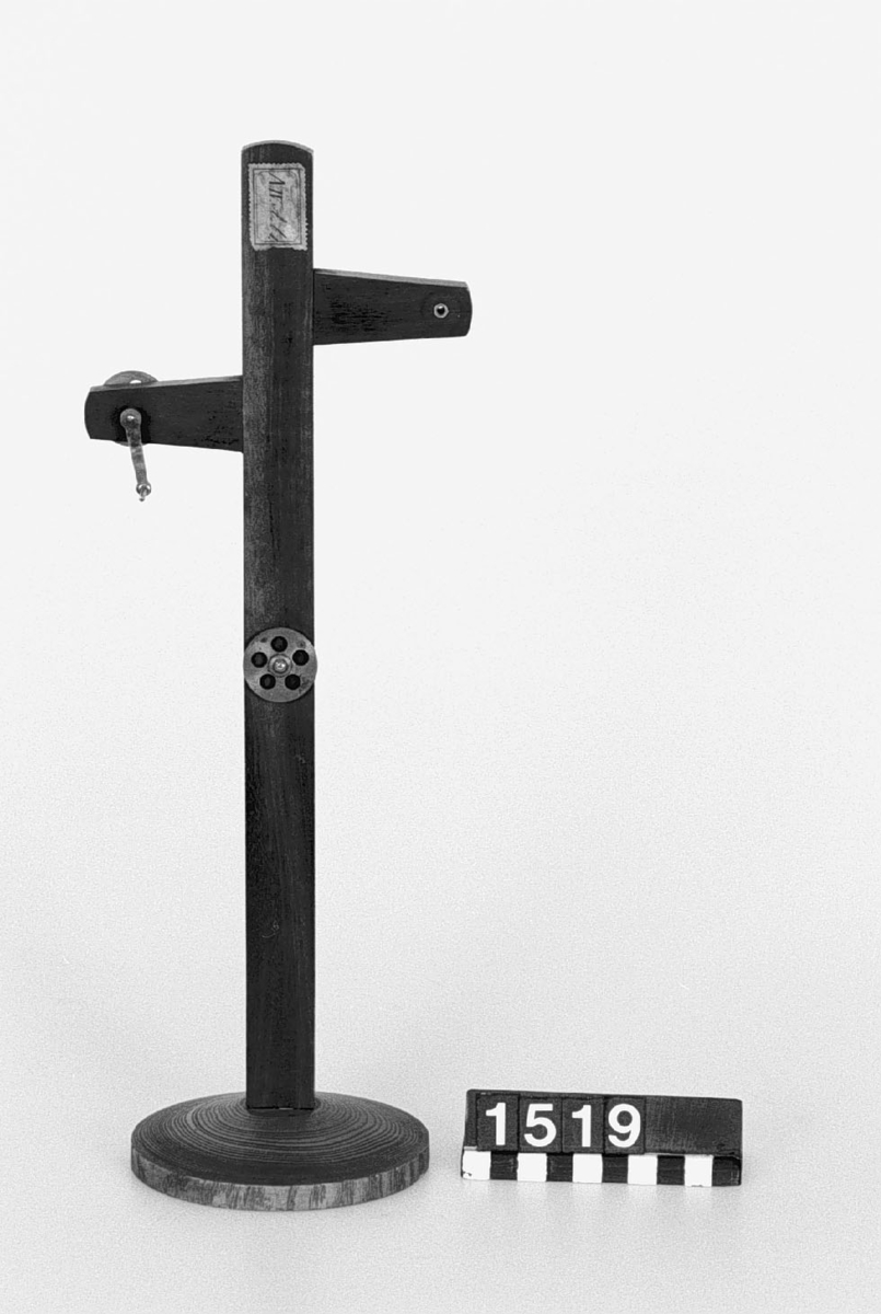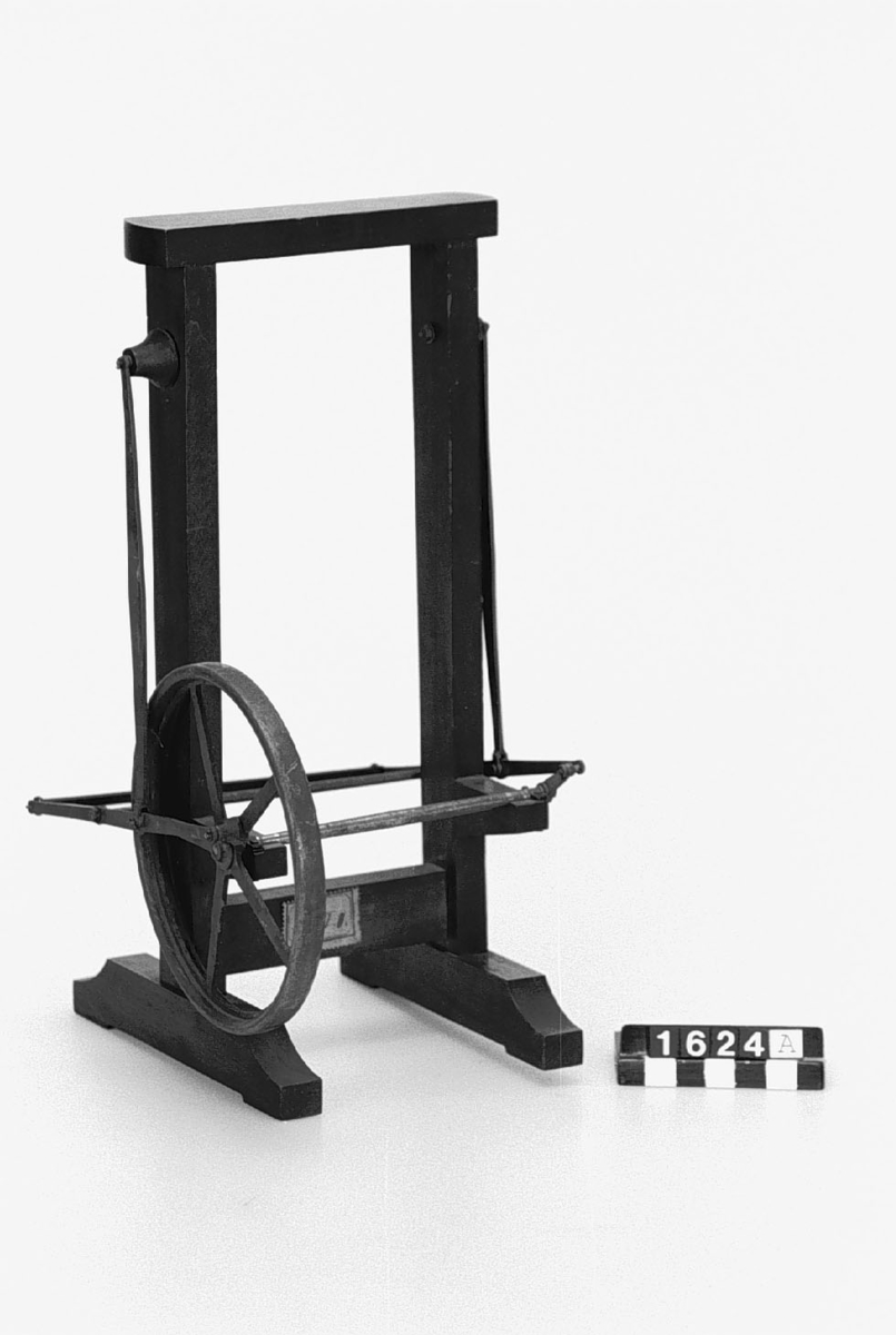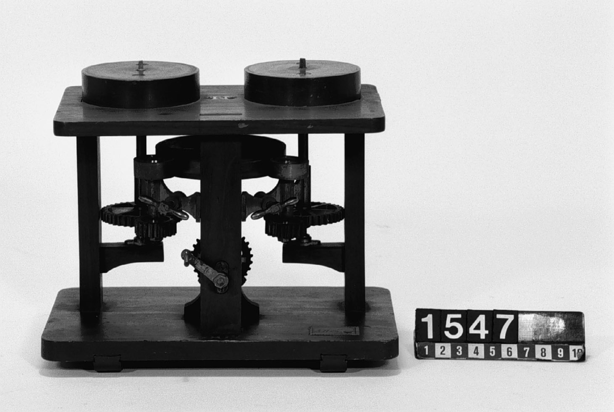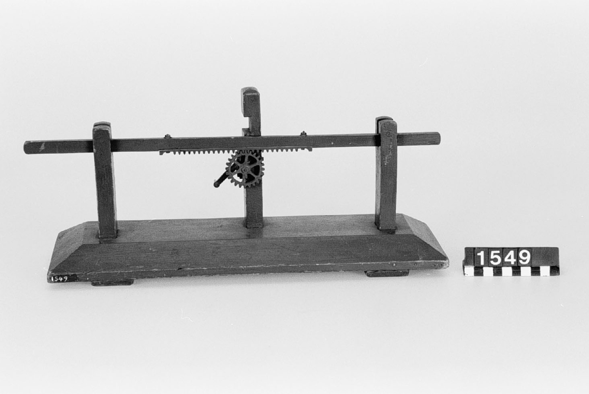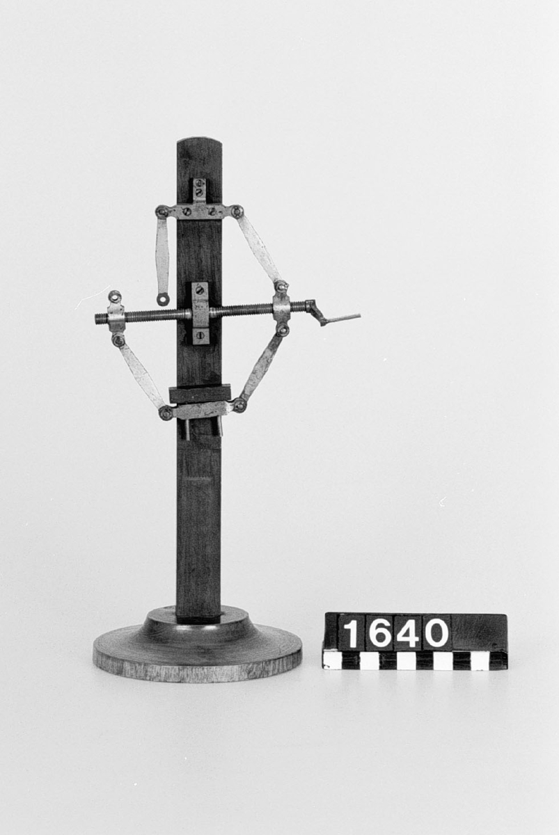 . Wooden rack with space to hold up to three telescopes and a wooden shelf above. The rack would have been attached to a wall or partition.