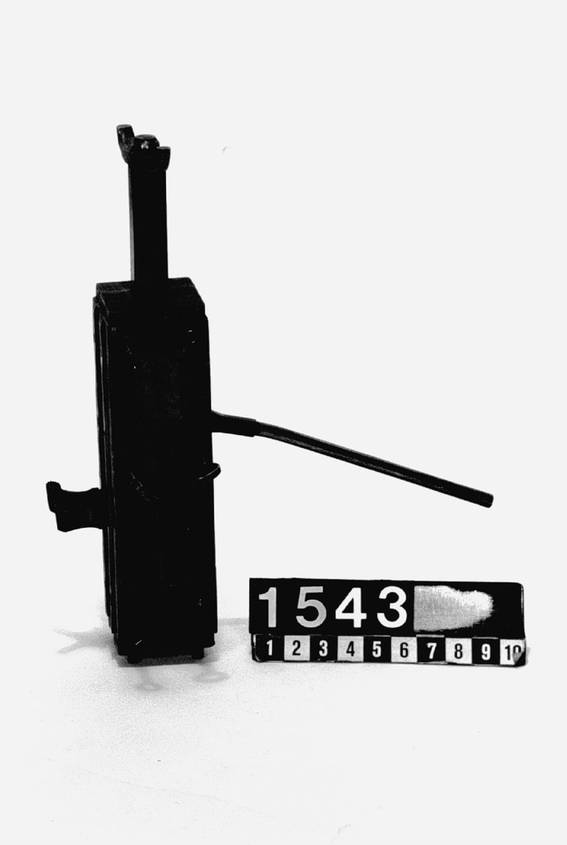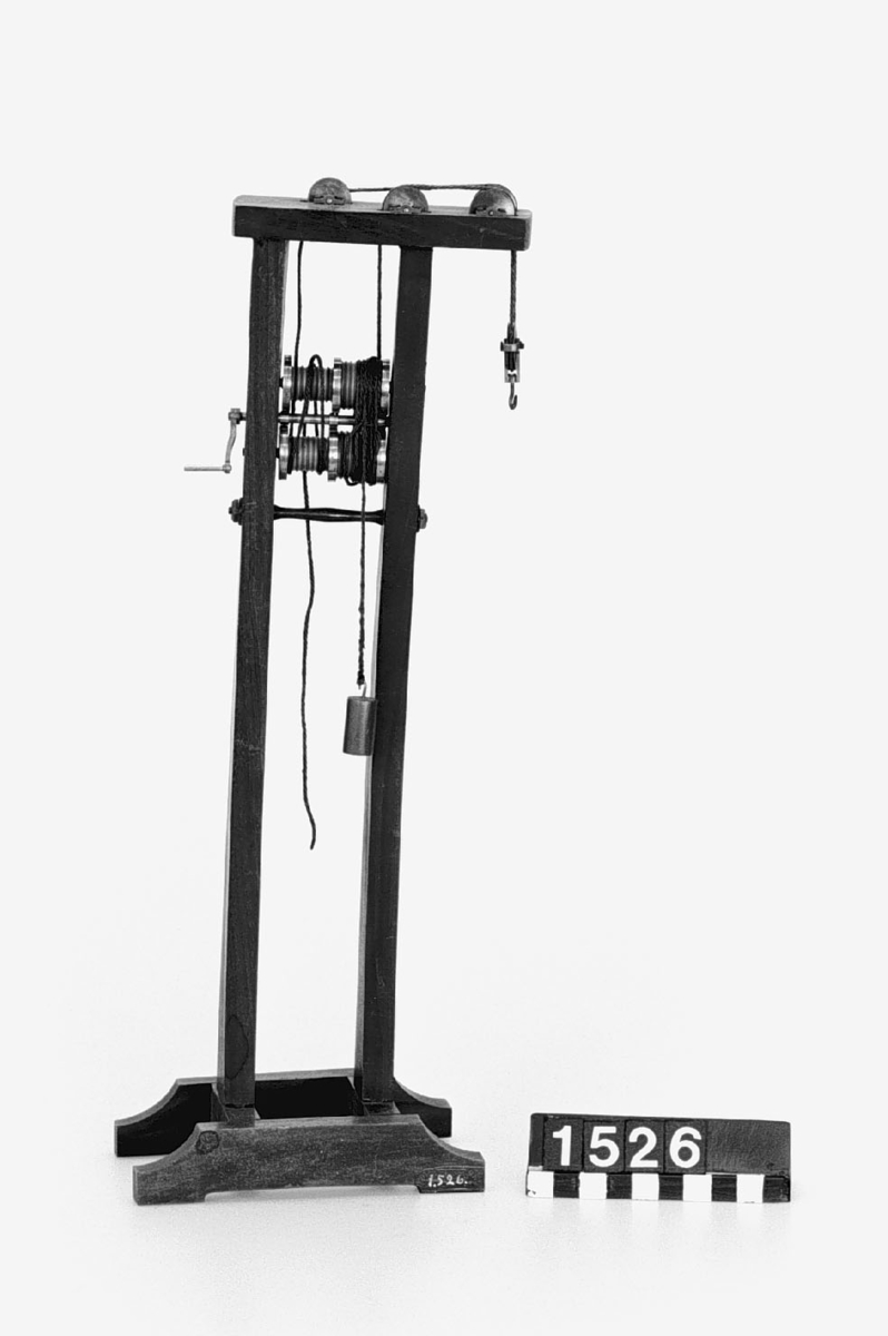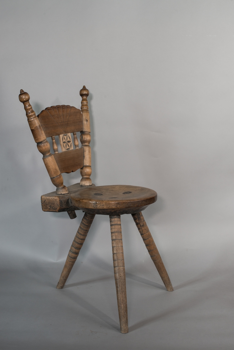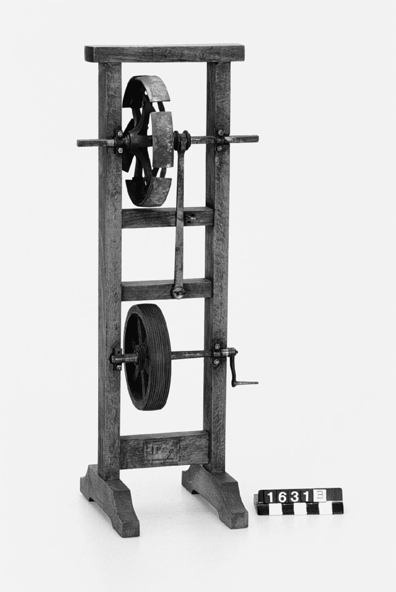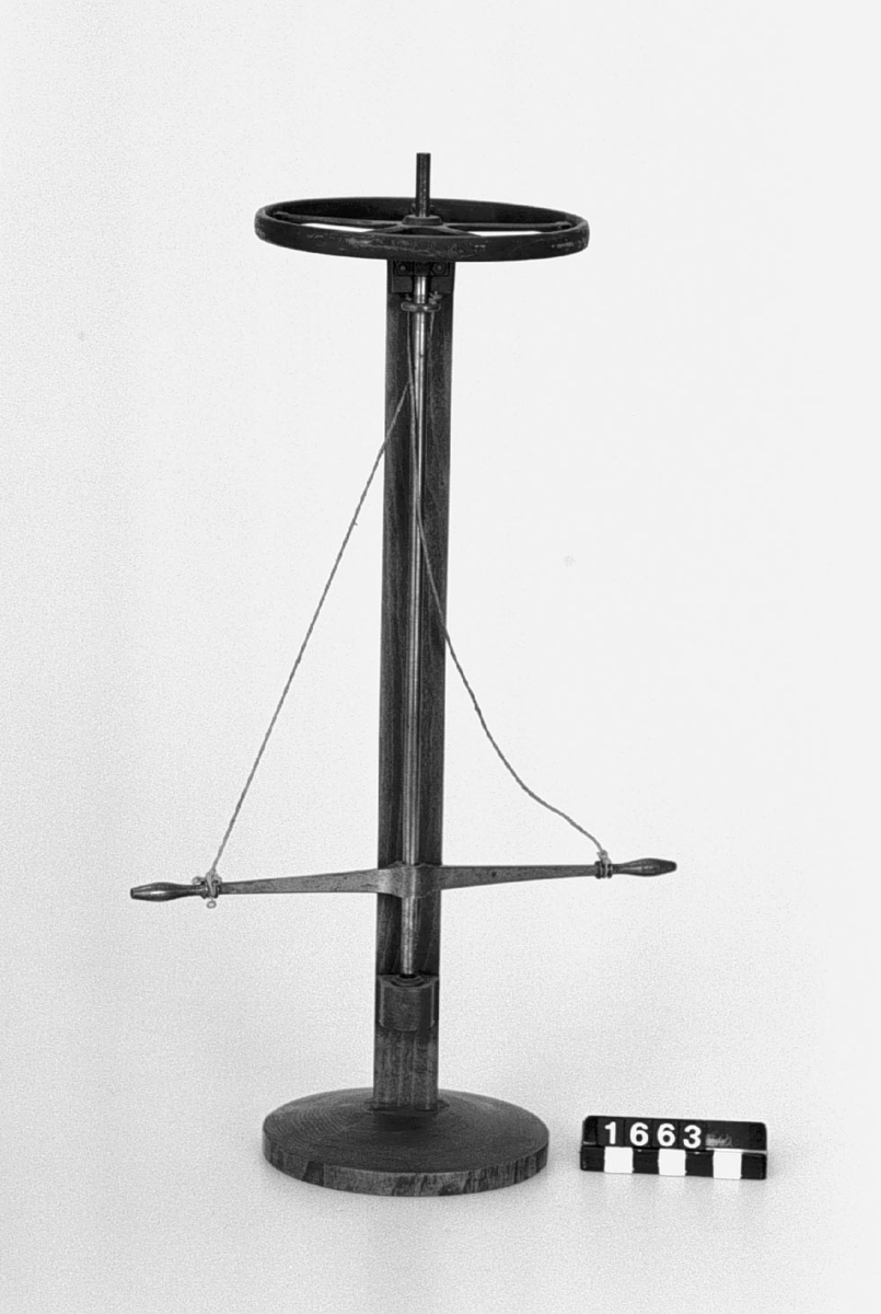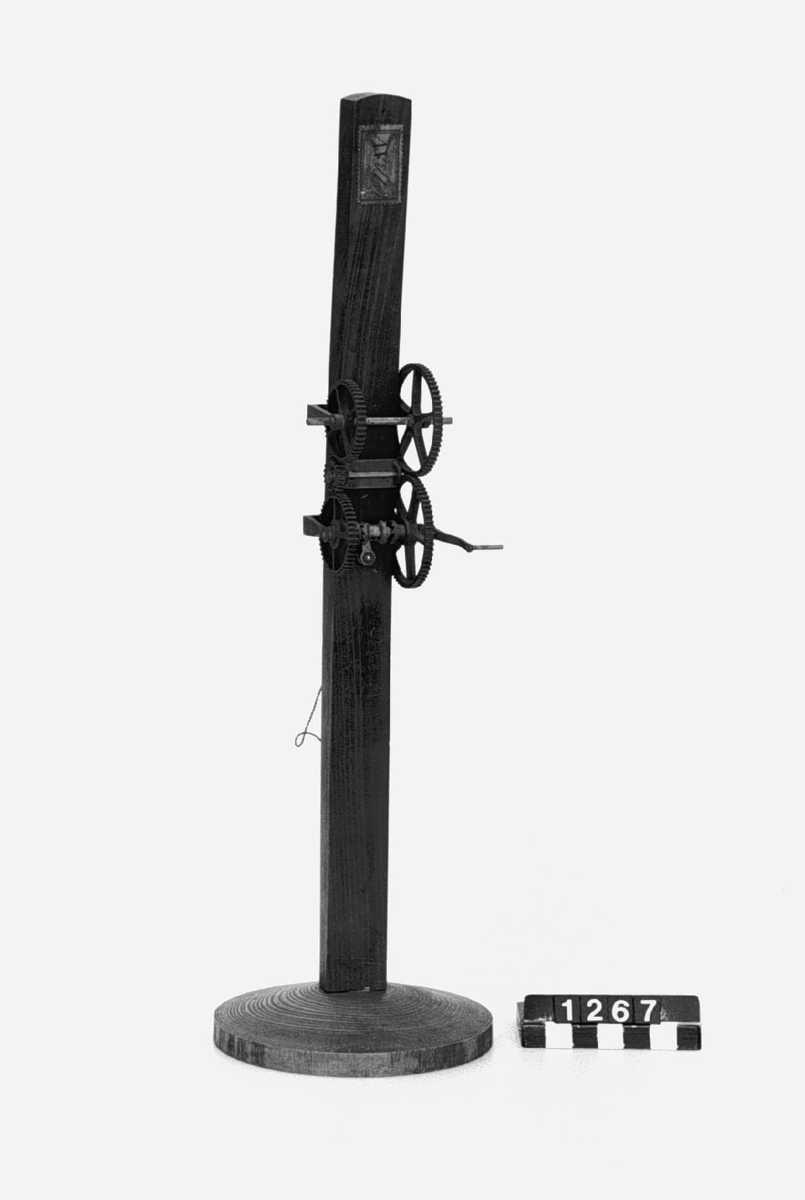 . Wooden rack with space to hold up to three telescopes and a wooden shelf above. The rack would have been attached to a wall or partition.