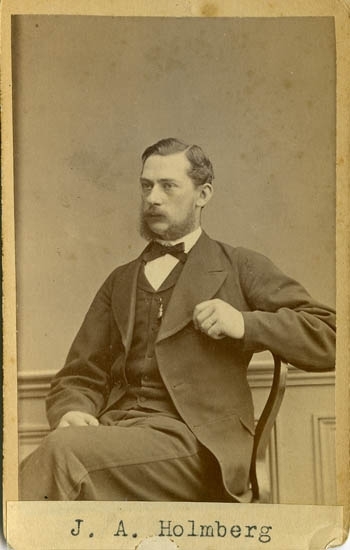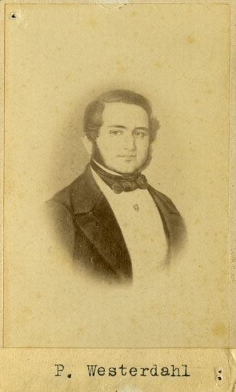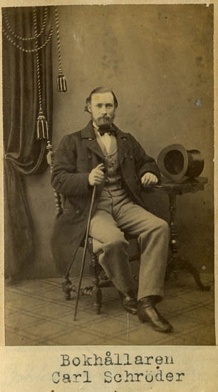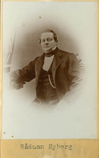 Text på kortets baksida: "Kopparslagare Gustaf Martin Nyberg. Rådman. Född 1/3 1816 död 4/9 1878".