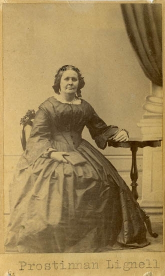 Text på kortets baksida: "Prostinnan Johanna Marg. Lignell. G. m. Komminster Carl Erik Lignell".