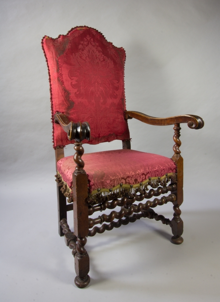 Unidentified seated male figure. A collodion positive (Ambrotype). A full length portrait of an unidentified male figure seated in a cloth covered arm chair. He is wearing a dark suit with a medal pinned to his left breast. His arms are resting on the