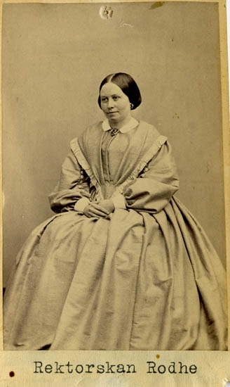 Text på kortets baksida: "Augusta Rodhe, f. Lundholm. G.m. rektor Johan Rodhe".