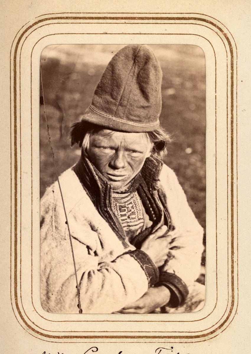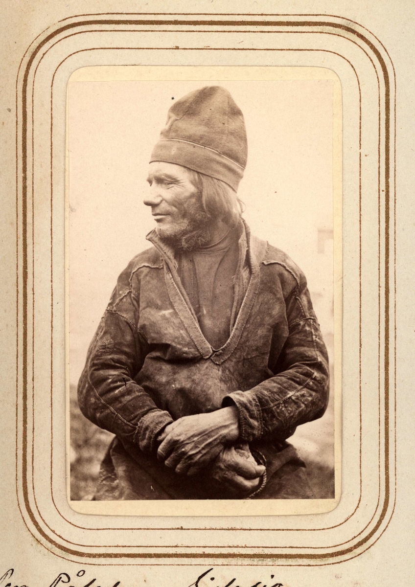 Porträtt av Nils Persson Tappa, Arjeplog. Ur Lotten von Dübens fotoalbum med motiv från den etnologiska expedition till Lappland som leddes av hennes make Gustaf von Düben 1868.