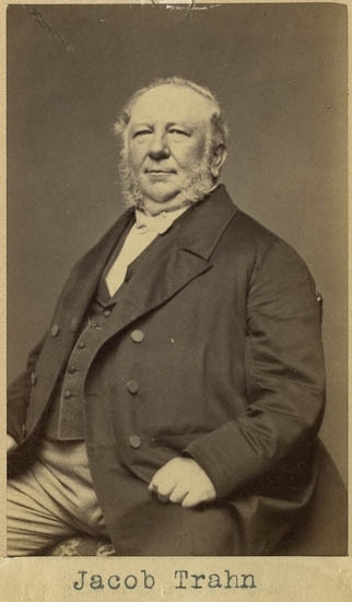 Text på kortets baksida: "Jacob Trahn från Hamburg. f. 1802 d. 1885 (till utlandet) 1855 till Göteborg, enl. Sten Kristiansson".