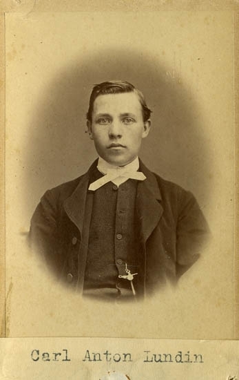 Text på kortets baksida: "Handlanden Carl Anton Lundin. Fadern Kyrkoväktare i Ua".