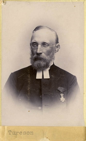 Text på kortets baksida: "Prosten Jacob Viktor Thureson , Krokstad. F. 1831 ".