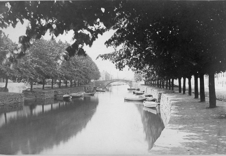 Enligt noteringar: Uddevalla. Mot hamnen. Strax nedanför där fotografen står skall Ludvig Hanssons bro byggas på 30talet.