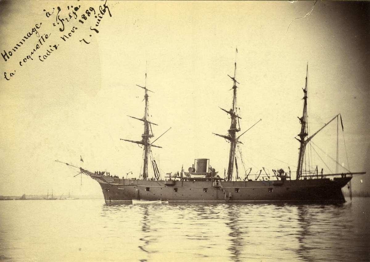 Långresan 12/9 1889 - 30/4 1890. Chef: Kom.kapt. L.L. von Horn, Sek.: Kapt. O. Pettersén. (mer info på fotot).