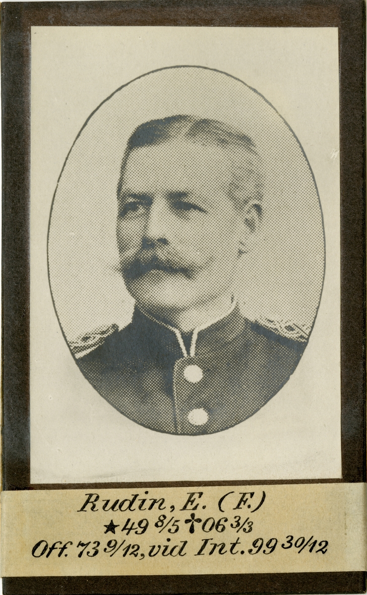 Porträtt av Emil Rudin, officer vid Första Göta artilleriregemente A 2 och Intendenturkåren.