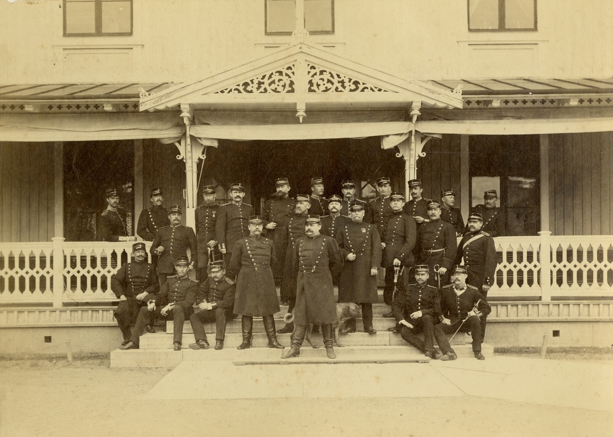 Grupporträtt av officerare vid officersvolontärskolan på Karlsborg 1889-1890.