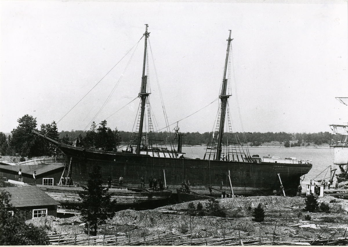 Briggen Trio av Östhammar på slipen Hörhamns [fel: skall vara Rörhamns] varv (Öregrund)