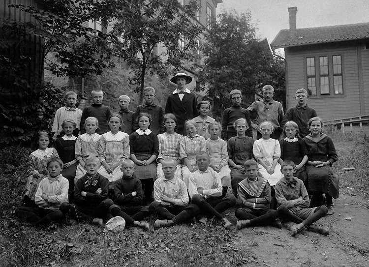 Lärarinnan Elin Berntsson med sin skolklass 1910 (bilden tagen våren 1911).