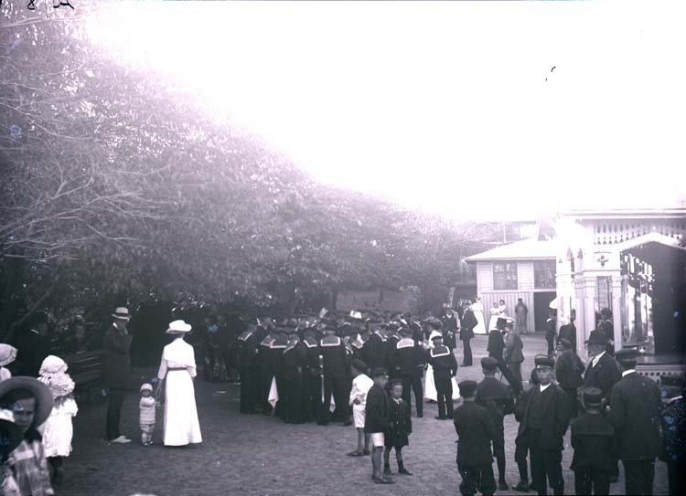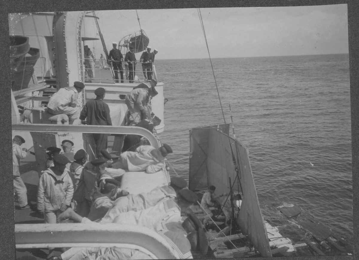 Enligt text som medföljde bilden "Skeppsgossar på badhusplan aug. 11".