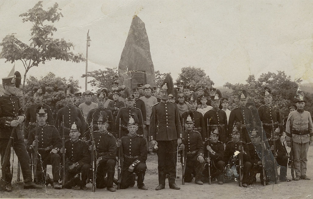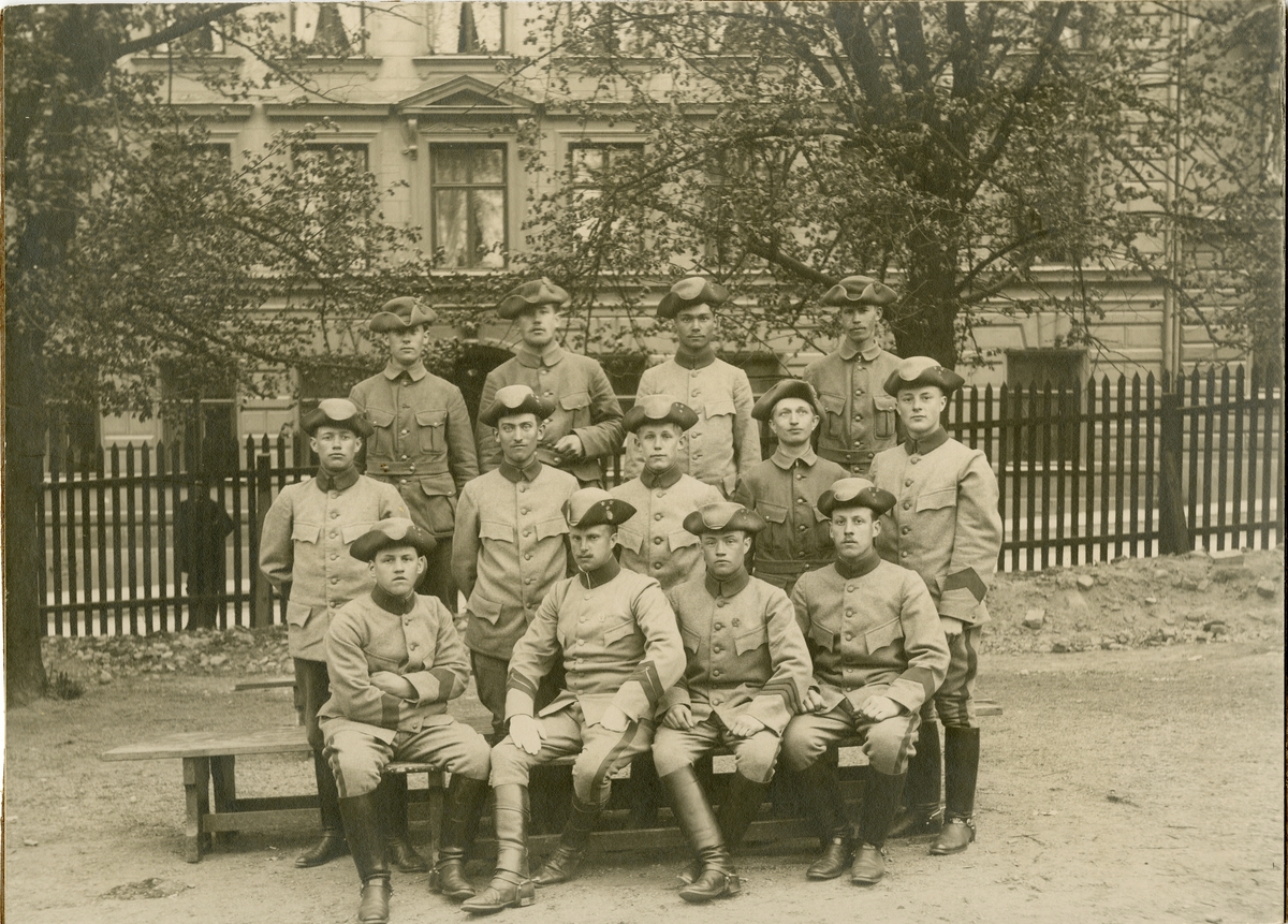 Grupporträtt av soldater vid Rekrytskolans 2:a batteri, Positionsartilleriregementet A 9, 1911.