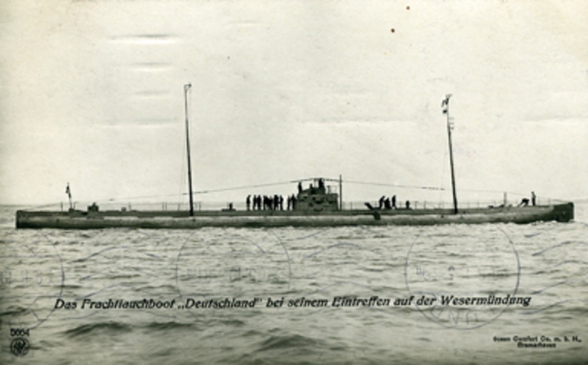 Das Frachtfauchboot "Deutschland" bei seinerm Eintreffen auf der Wesermündung. Ocean Comfotrt Co. m.b.h. Bremerhaven