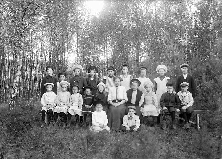 Enligt senare noteringar: "Skolklass på Vässby skola, som var Torreby gods privatskola. Lärarinnan hette Laura Sandström." (BJ)