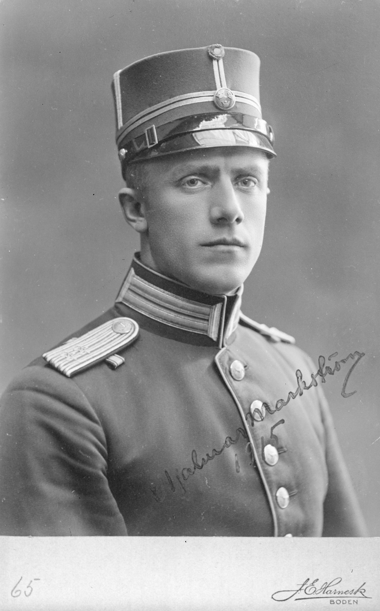 Porträtt av militära flygpionjären Hjalmar Markström, från Norrbottens regemente. Porträttet är signerat av Malmström.