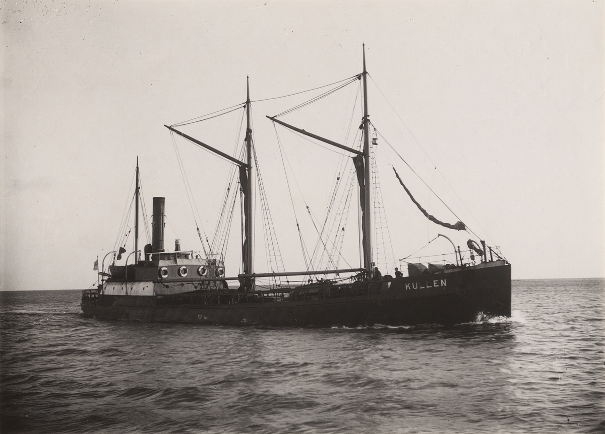 Lastångfartyget KULLEN av Göteborg på ingående till Åhus, den 4 febr. 1925.