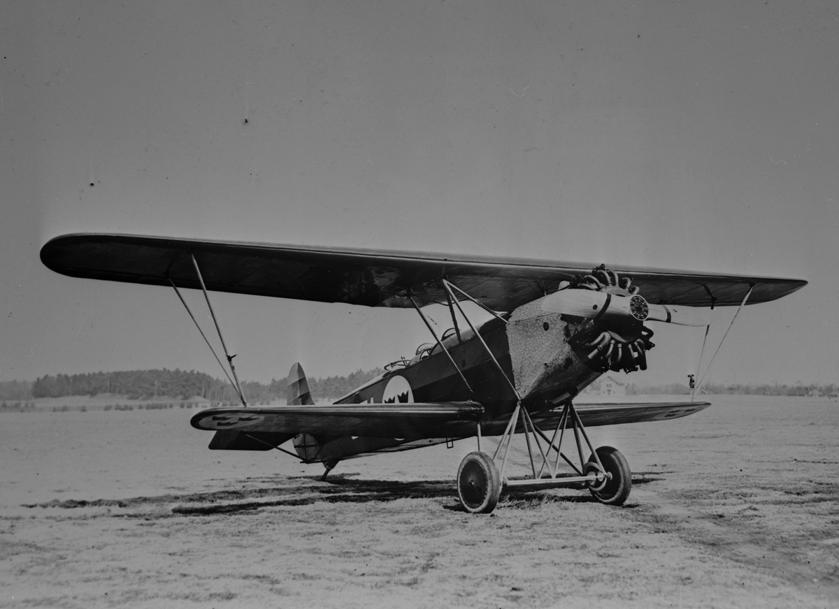 Karlsborg 1928. Phönix-jagaren efter första nödlandningen på exercisheden.