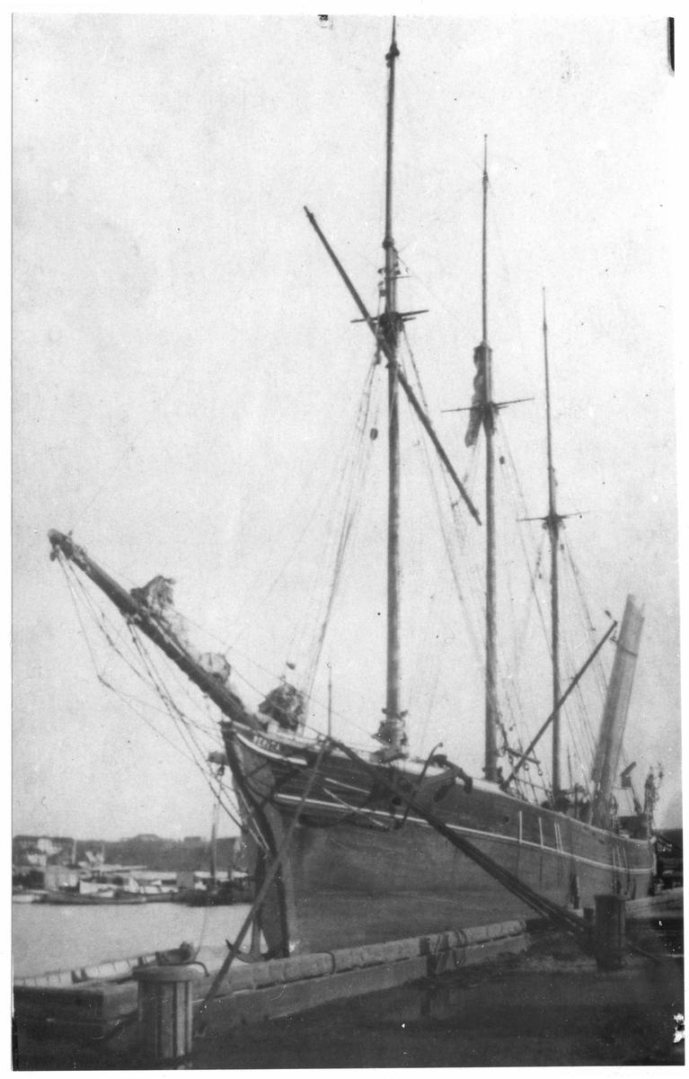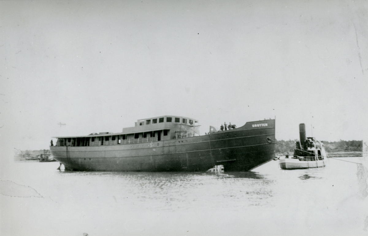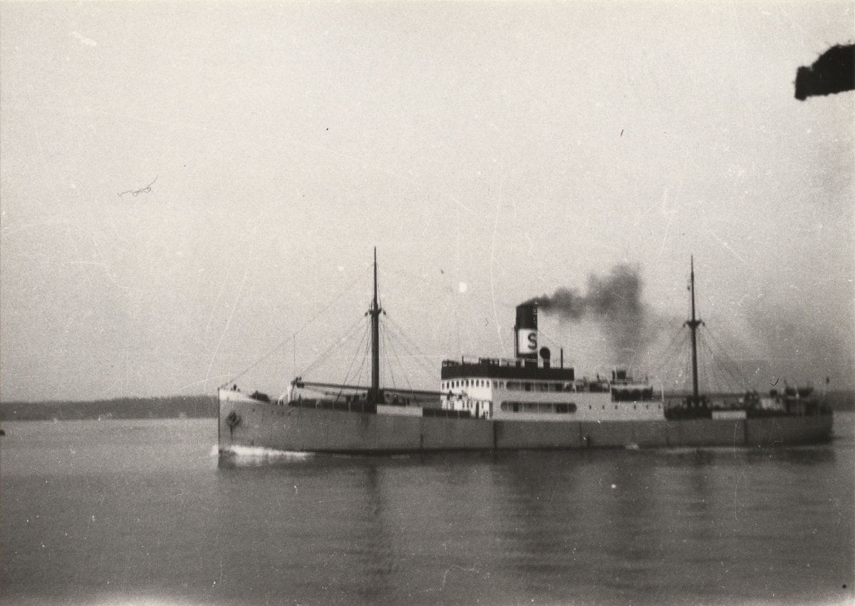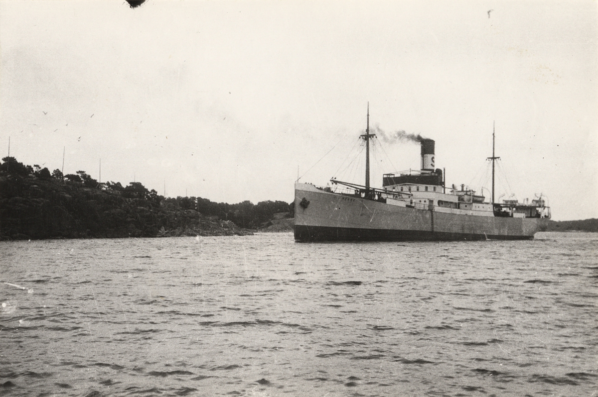 Passagerarångfartyget Ragne av Stockholm vid Stockholmskajen i Sundsvall år 1928. Männen i förgrunden är stuvare från Sundsvall.