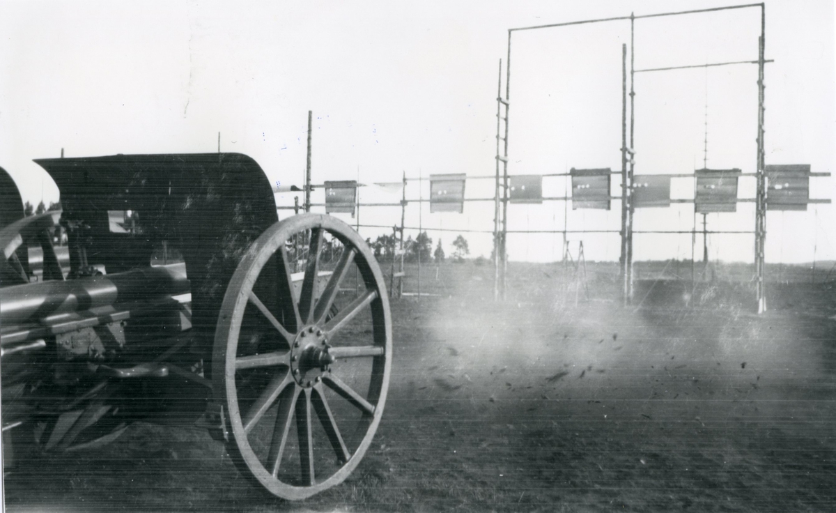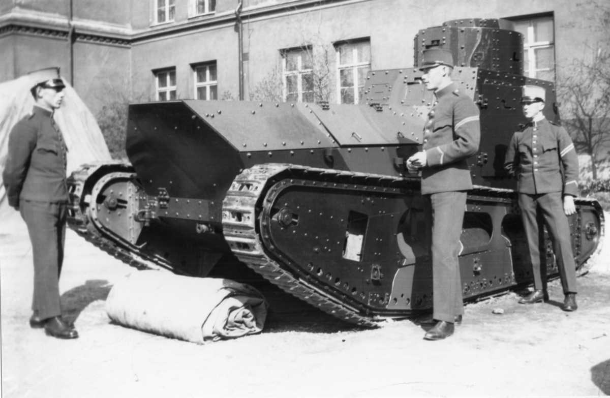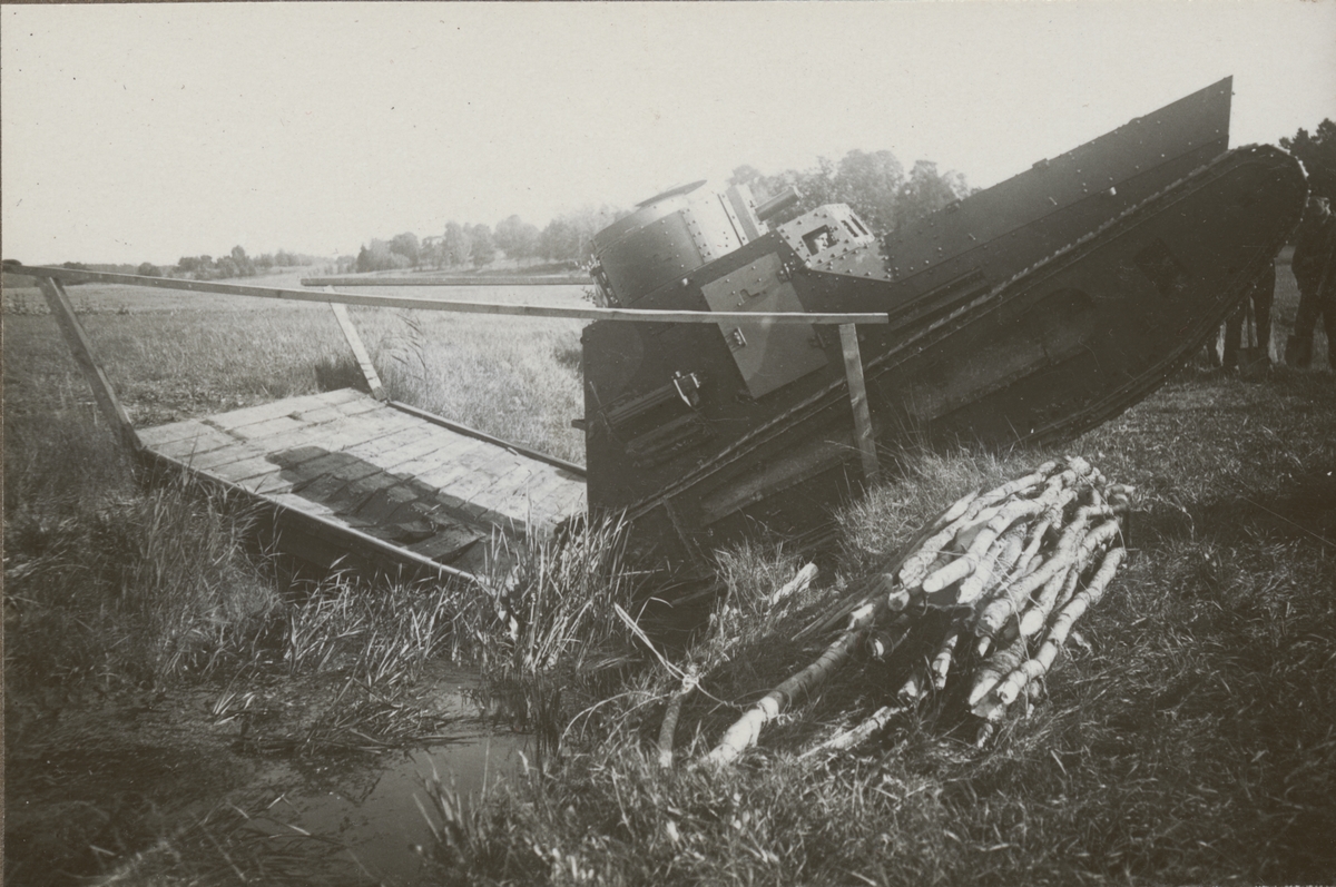 Fältövning med stridsvagn m/1921 (eller m/1921-1929) på Järvafältet, Stockholm. Göta livgardes stridsvagnsbataljon år 1928-1930.