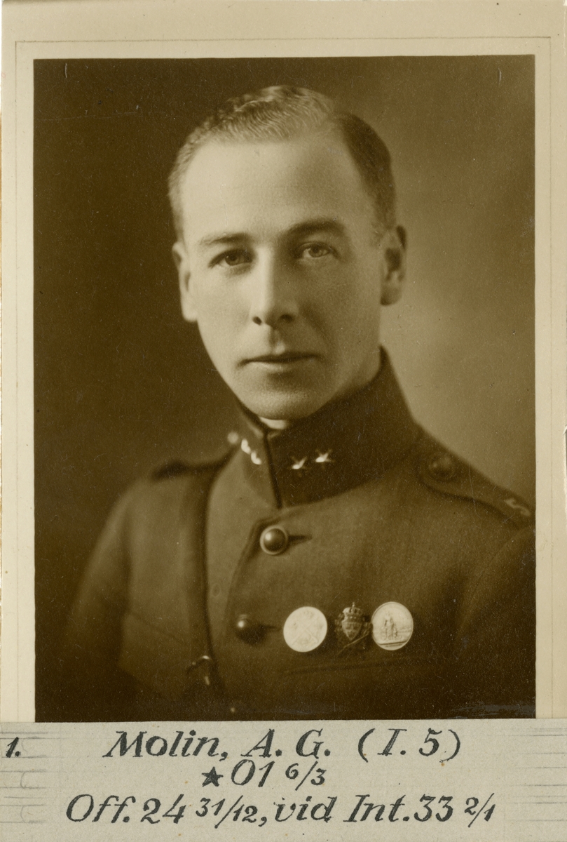 Porträtt av Arne Georg Molin, löjtnant vid Intendenturkåren.
