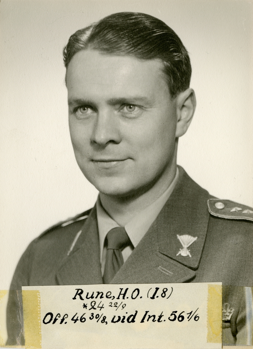 Porträtt av Hans Olof Rune, officer vid Upplands regemente I 8 och Intendenturkåren.