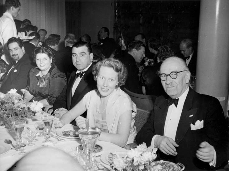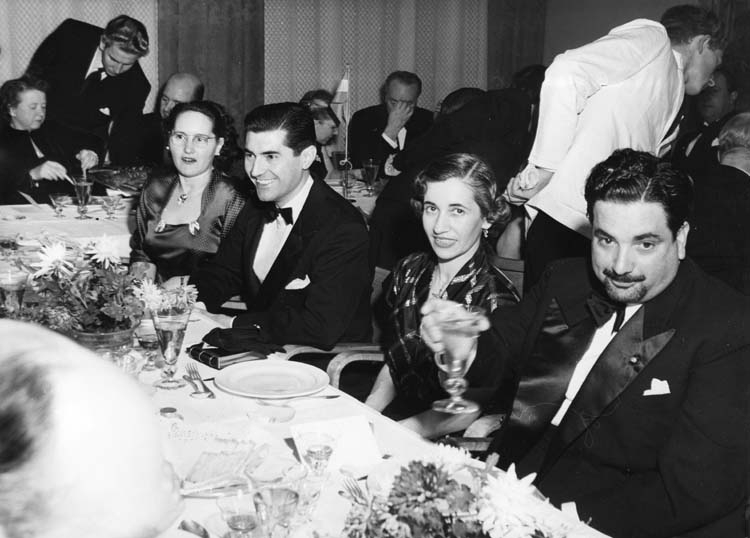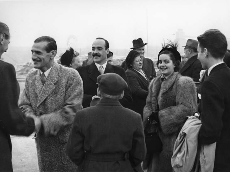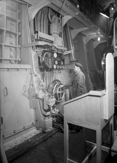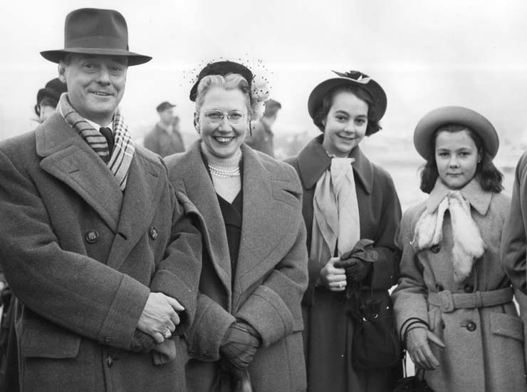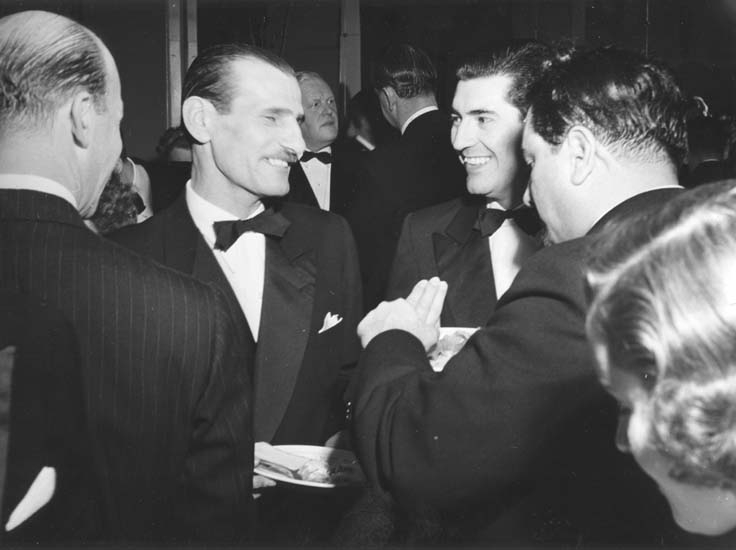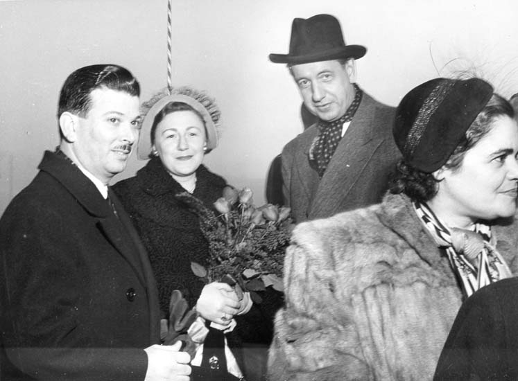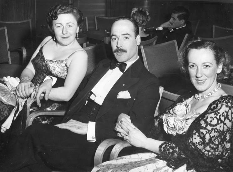 Sjösättning och dop av fartyg 113 M/T Islas Georgias. Fartygets gudmor skakar hand med Uddevallavarvets grundare och dåvarande VD Gustaf B. Thordén.