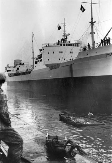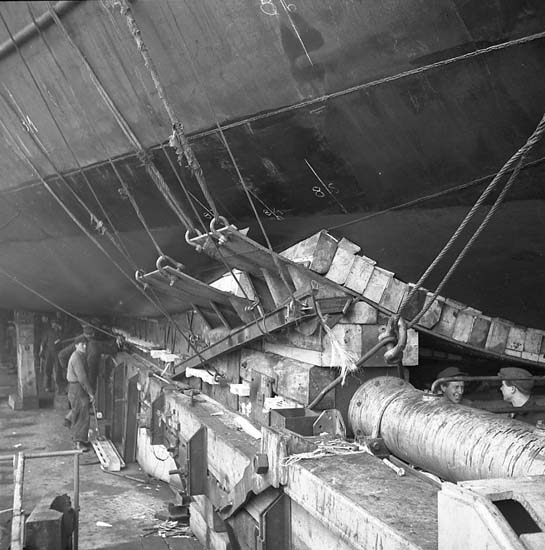 Sjösättning och dop av fartyg 113 M/T Islas Georgias. Fartygets gudmor längst till vänster i bilden.