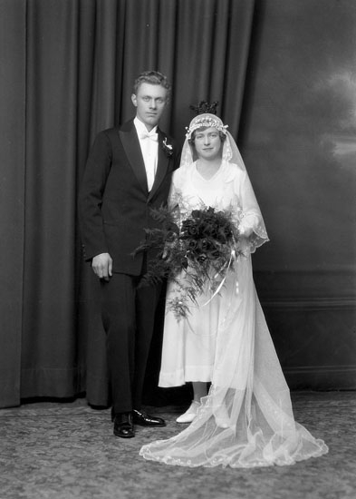 Uppgift enligt fotografen: "Uddevalla. Ateljéfoto. Brudpar. Erik Hermansson."