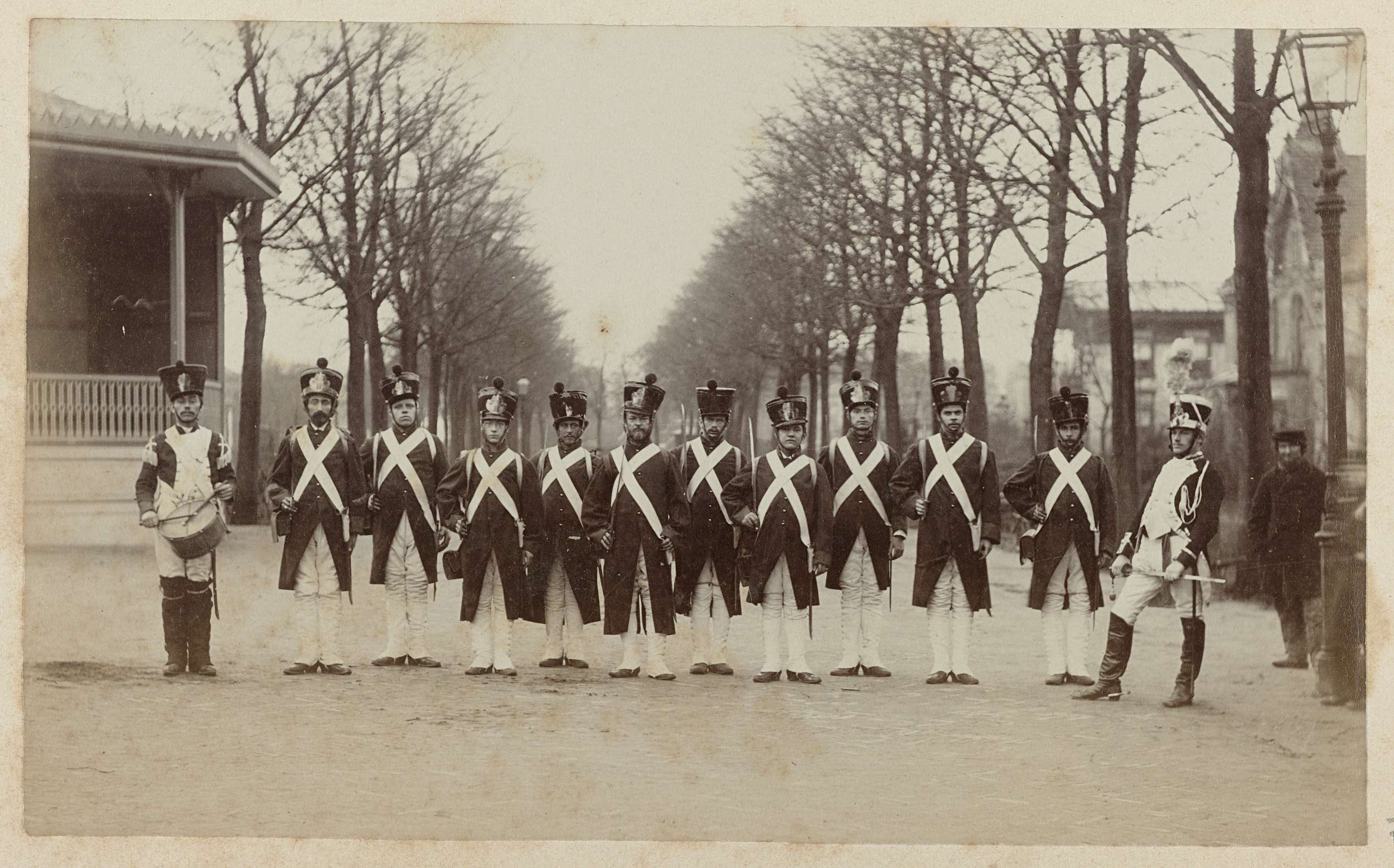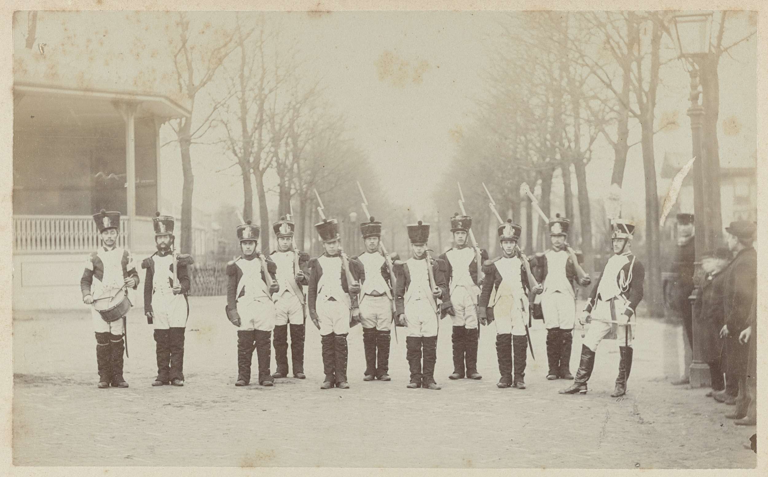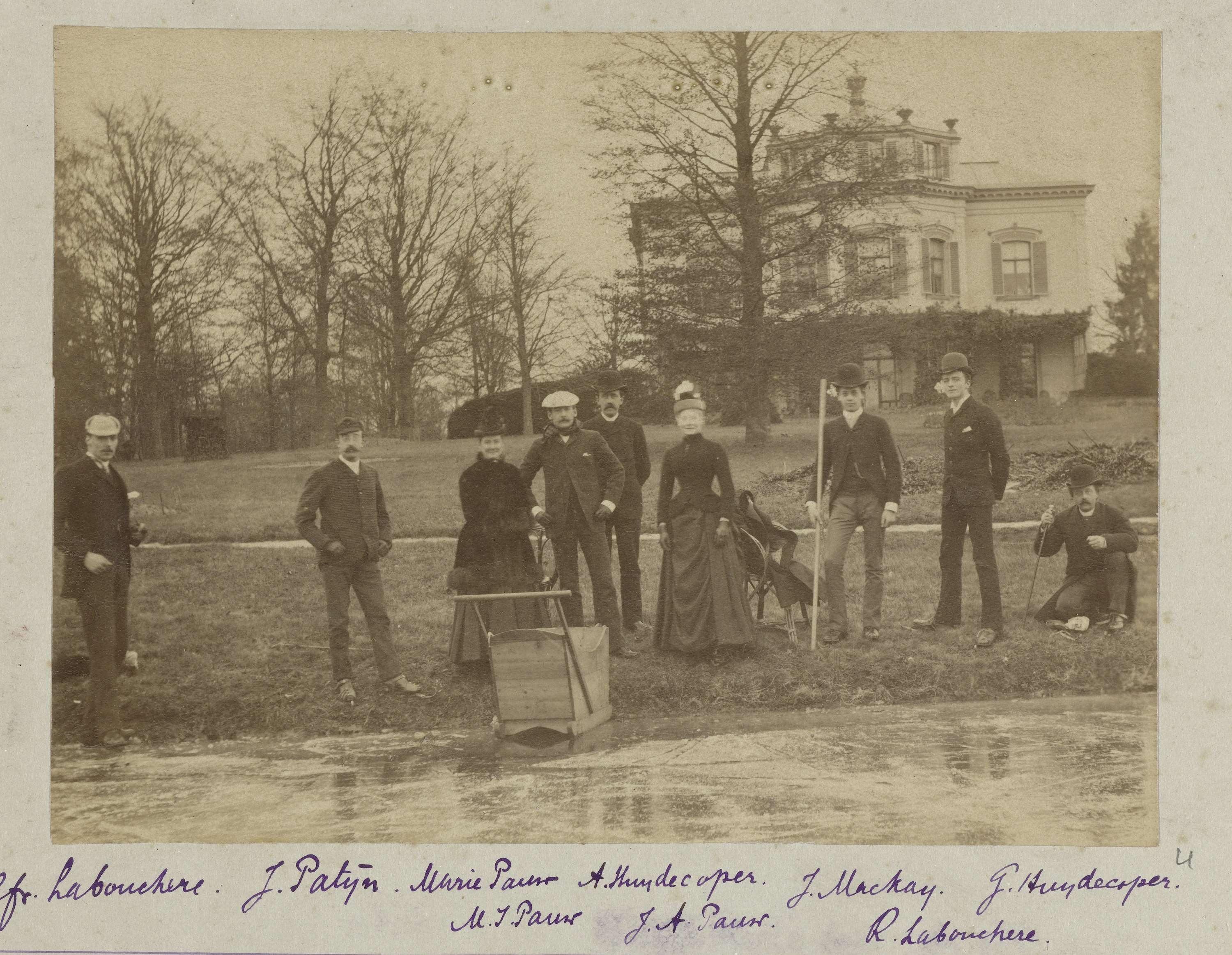 Groep van dames en heren langs het ijs, op de achtergrond landhuis Pavia, Zeist