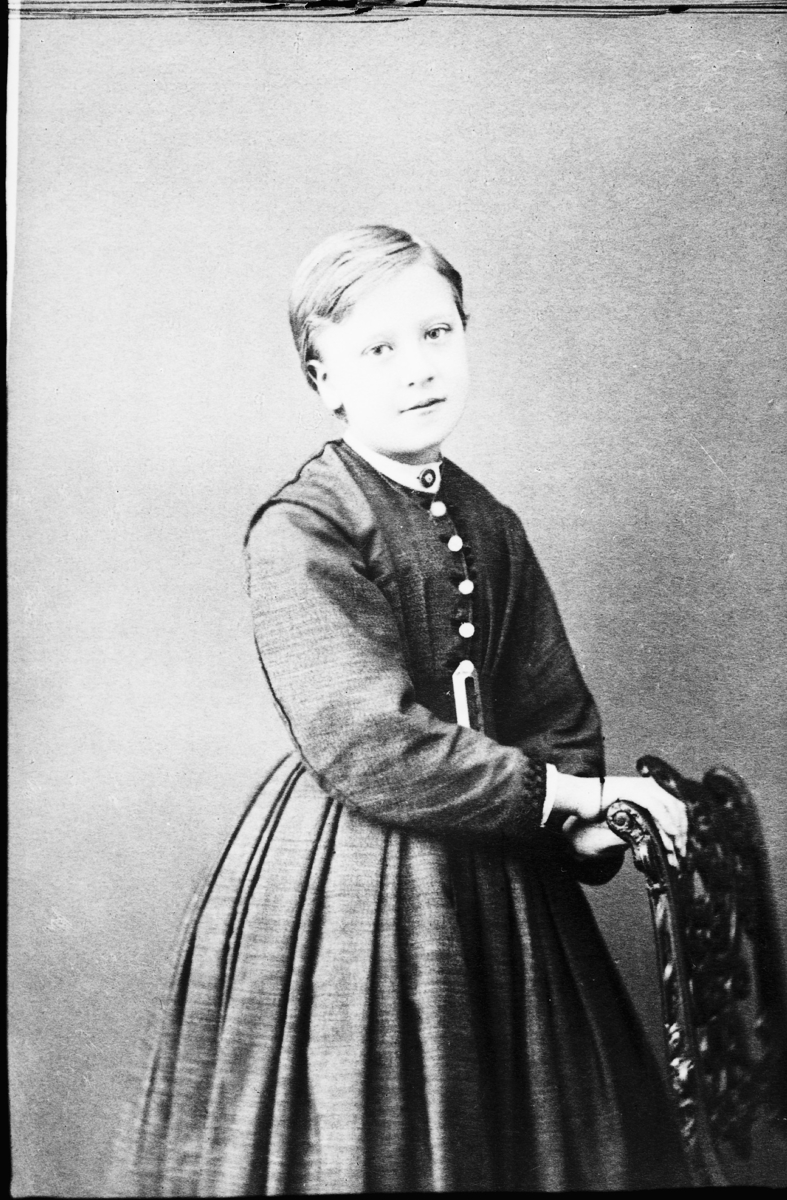 Portret van de vijf kinderen van de fotograaf (Sacha, Renée, Dorothée, Thelma, en Irène) met een nanny