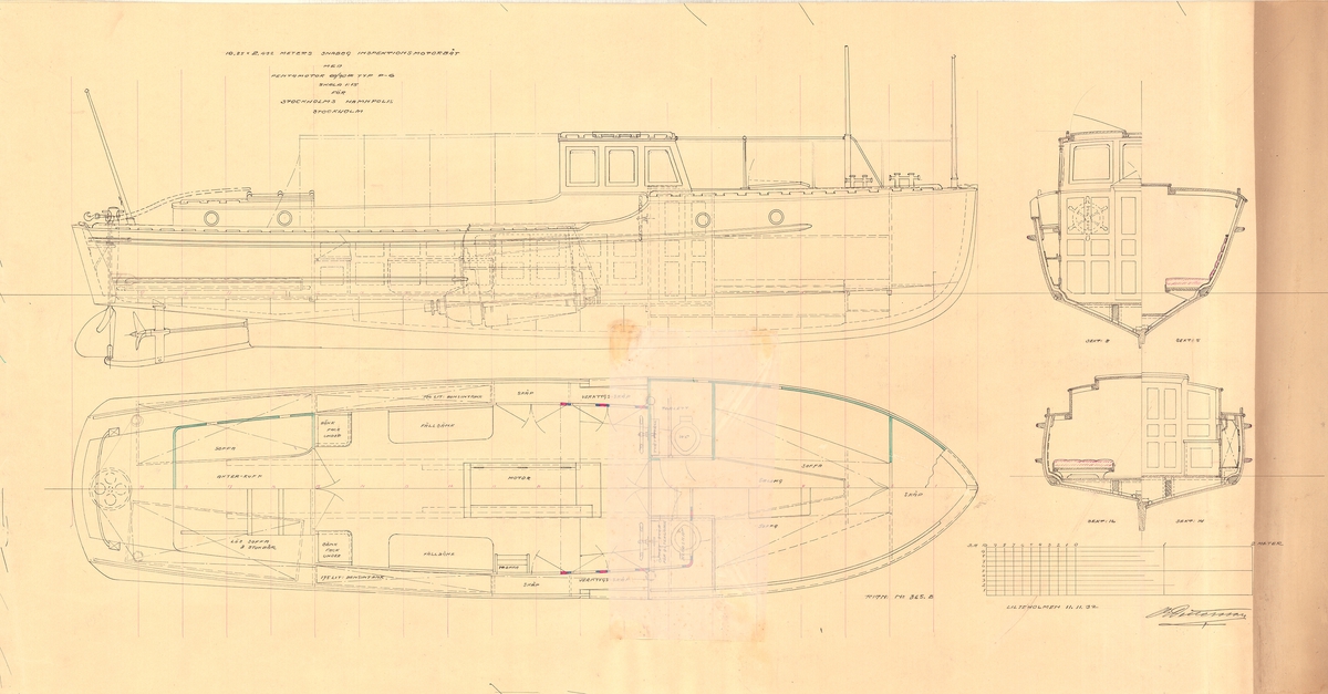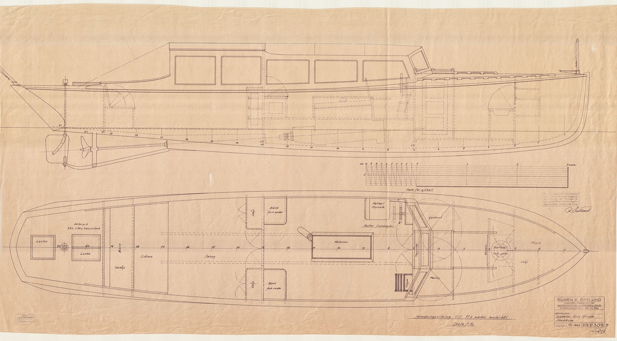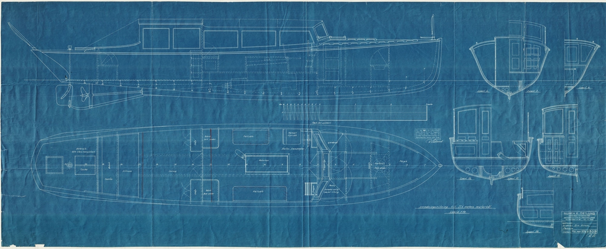 Ajax 1934. Scale 1:24. A plan showing the split fore/aft body of the Leander class light cruiser HMS Ajax (1934).