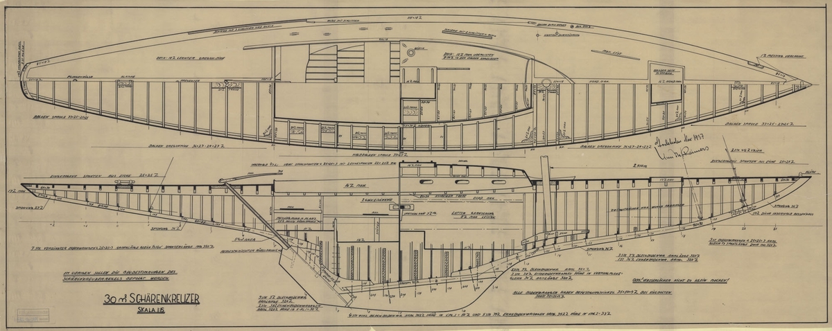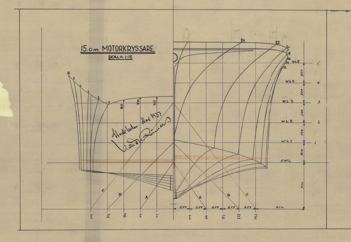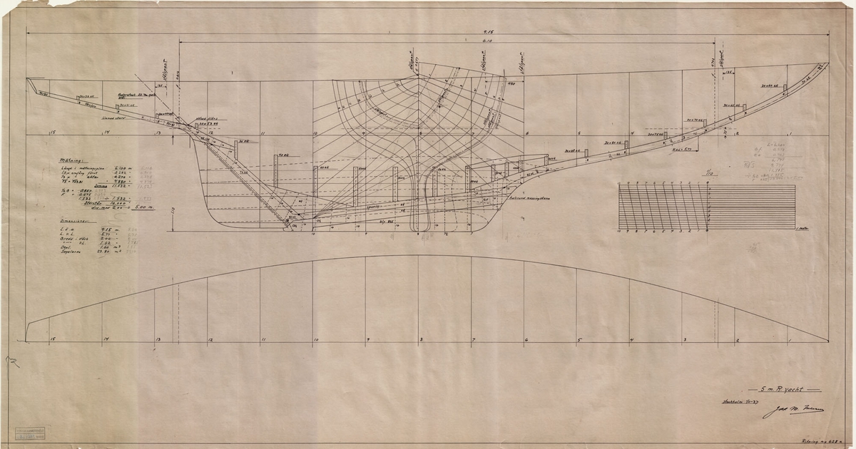 HMS Hardy (1936). Scale 1:48. A plan showing the inboard profile of the destroyer flotilla leader HMS Hardy (1936).