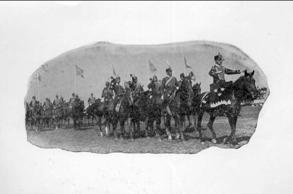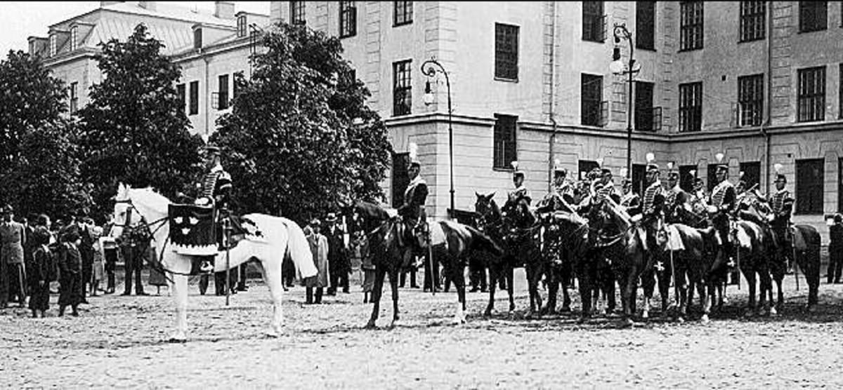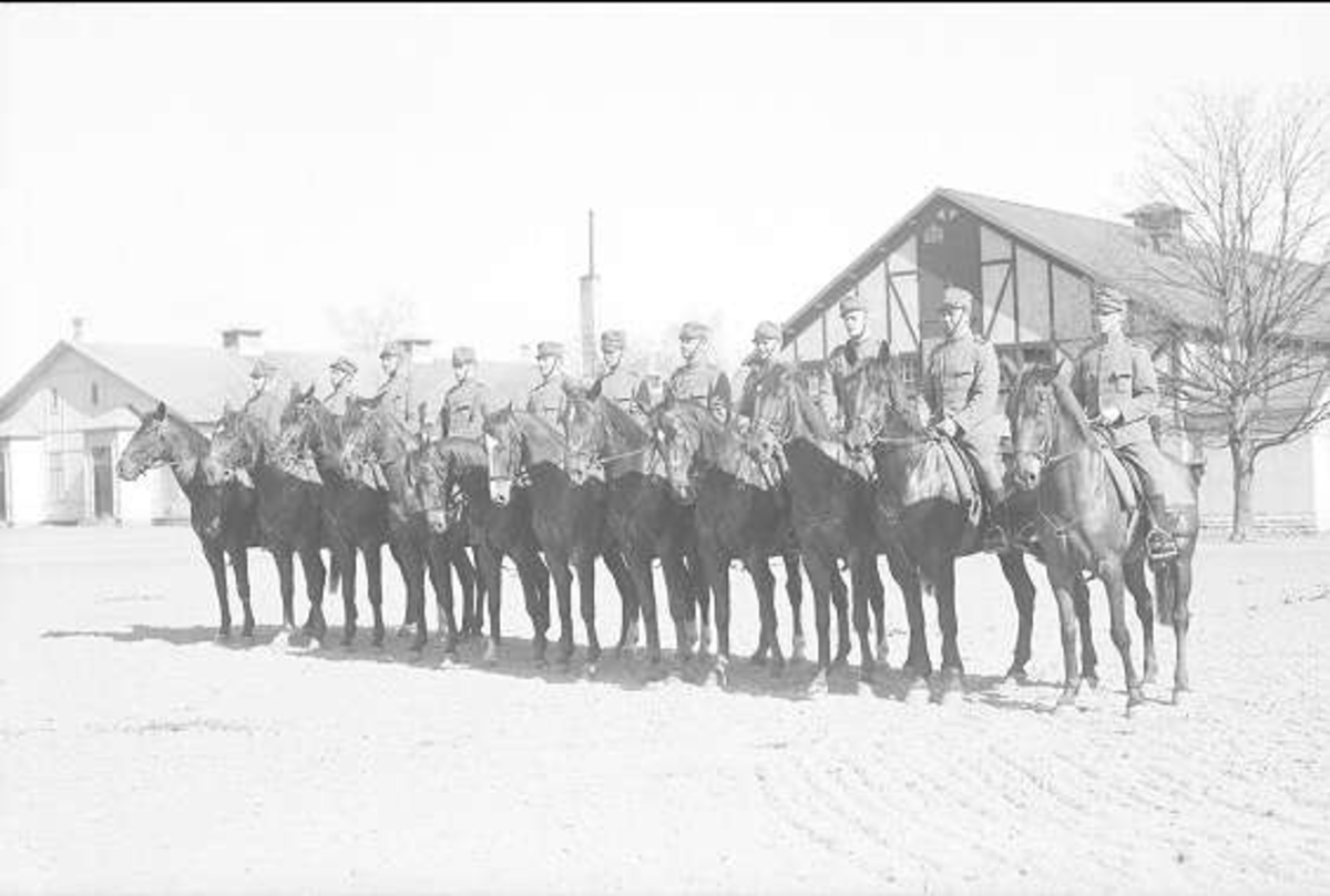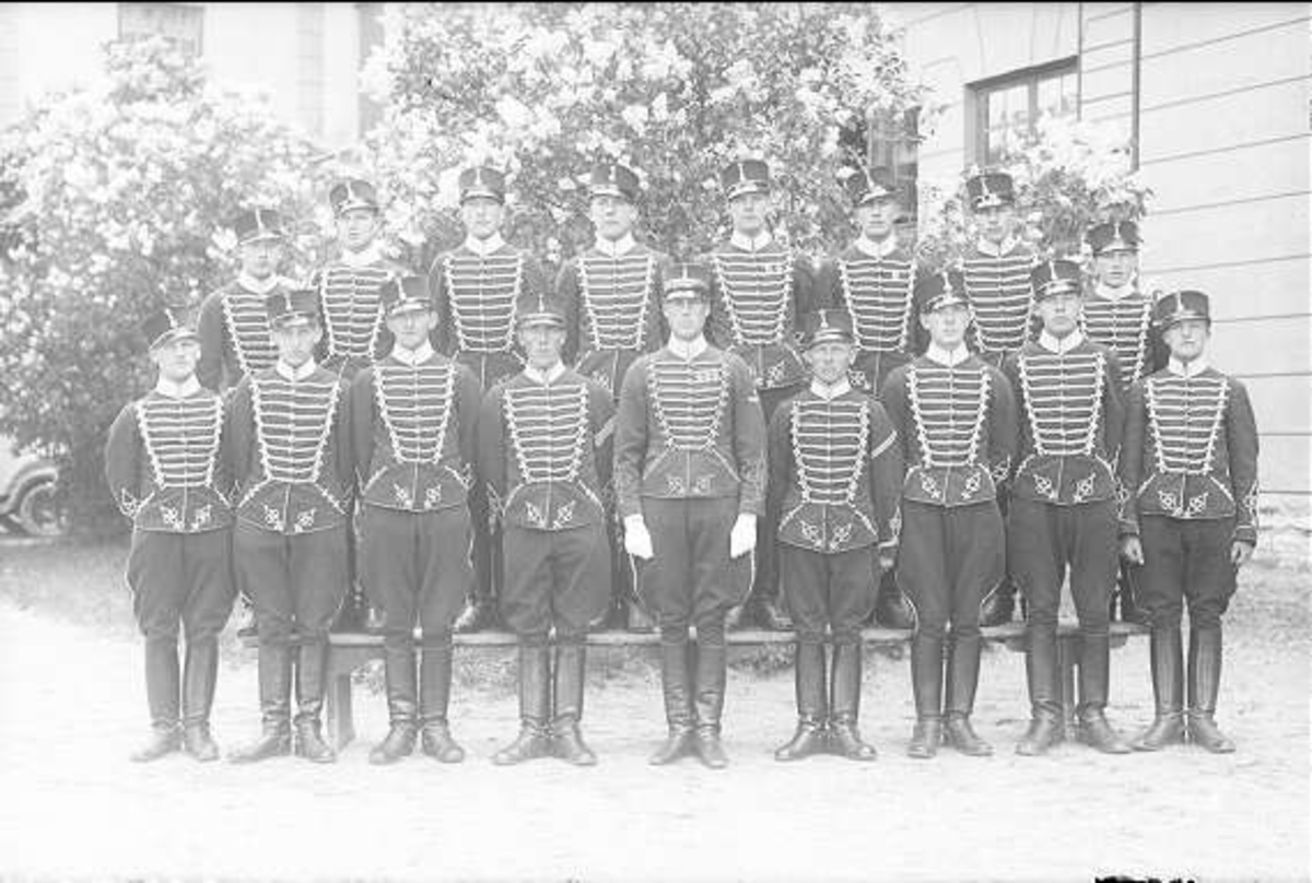 En avdelning av aspirantskolan uppställd på kaserngården söder stallarna. Uniform m/23.