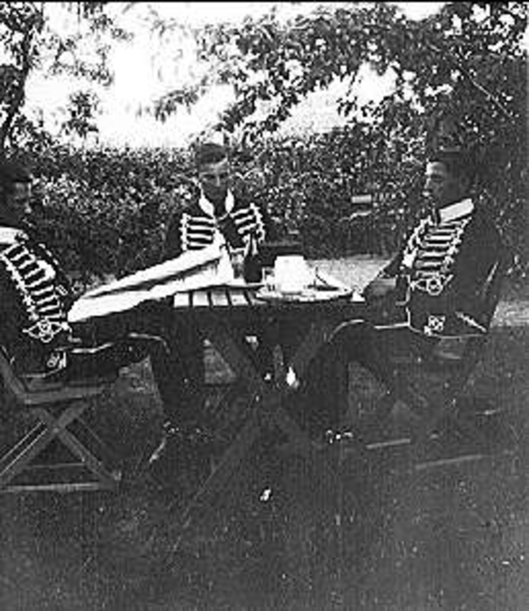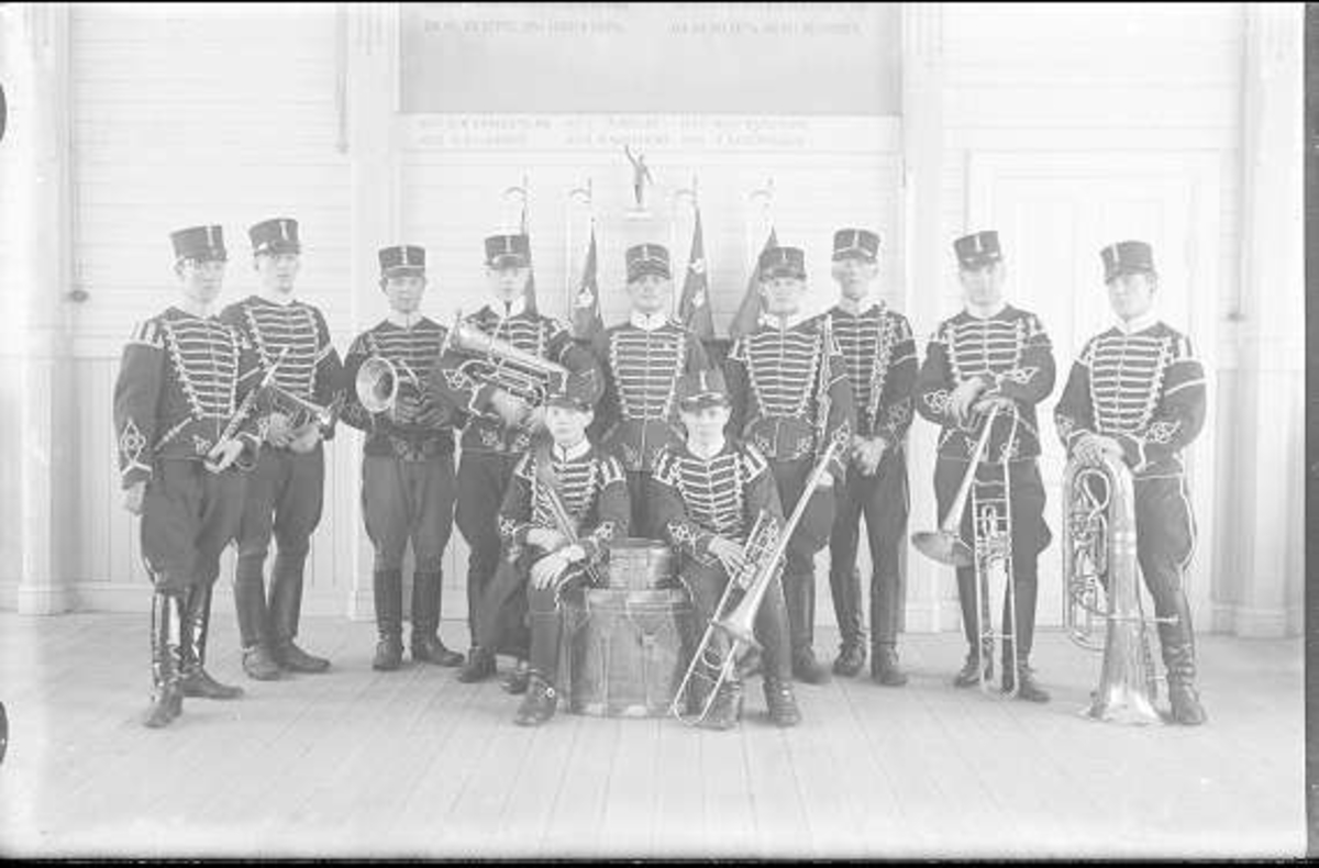 Den sista delen av K 3 musikkår som 1936 bestod av 16 musiker. Musikernas m/ä-uniformer skilde sig från övriga genom beteckningen på bägge axlarna, där fästes det så kallade "svalboet".