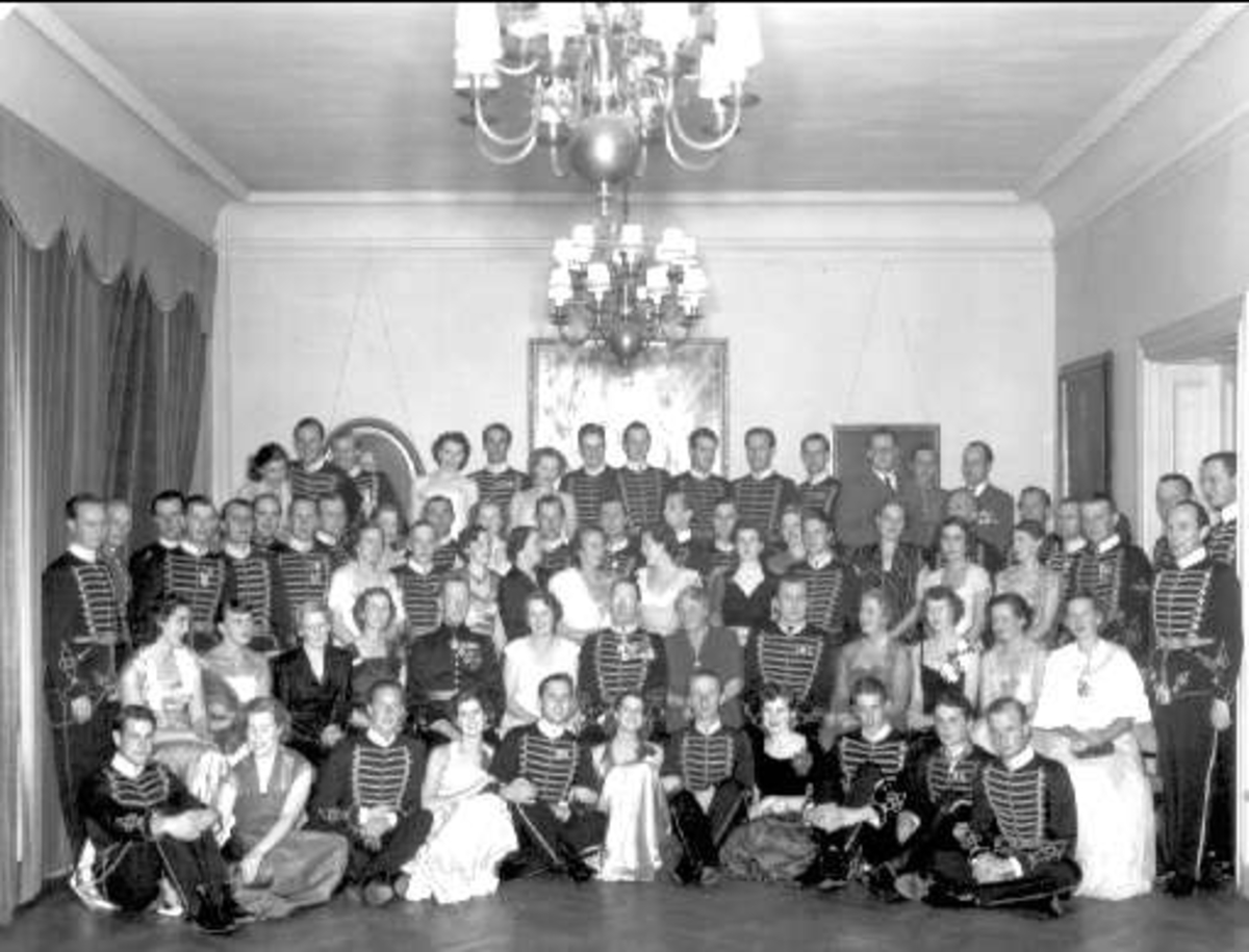 Kadettbal på officersmässen K 3, jan 1951. 2:a raden från vänster: Erik Hedenstierna, Sven Littorin, Karin Hedenstierna, Bengt Ljungquist (skolchef), Greta Bergenstråle,Märta Ljungquist, Gösta Bergenstråle ( sek