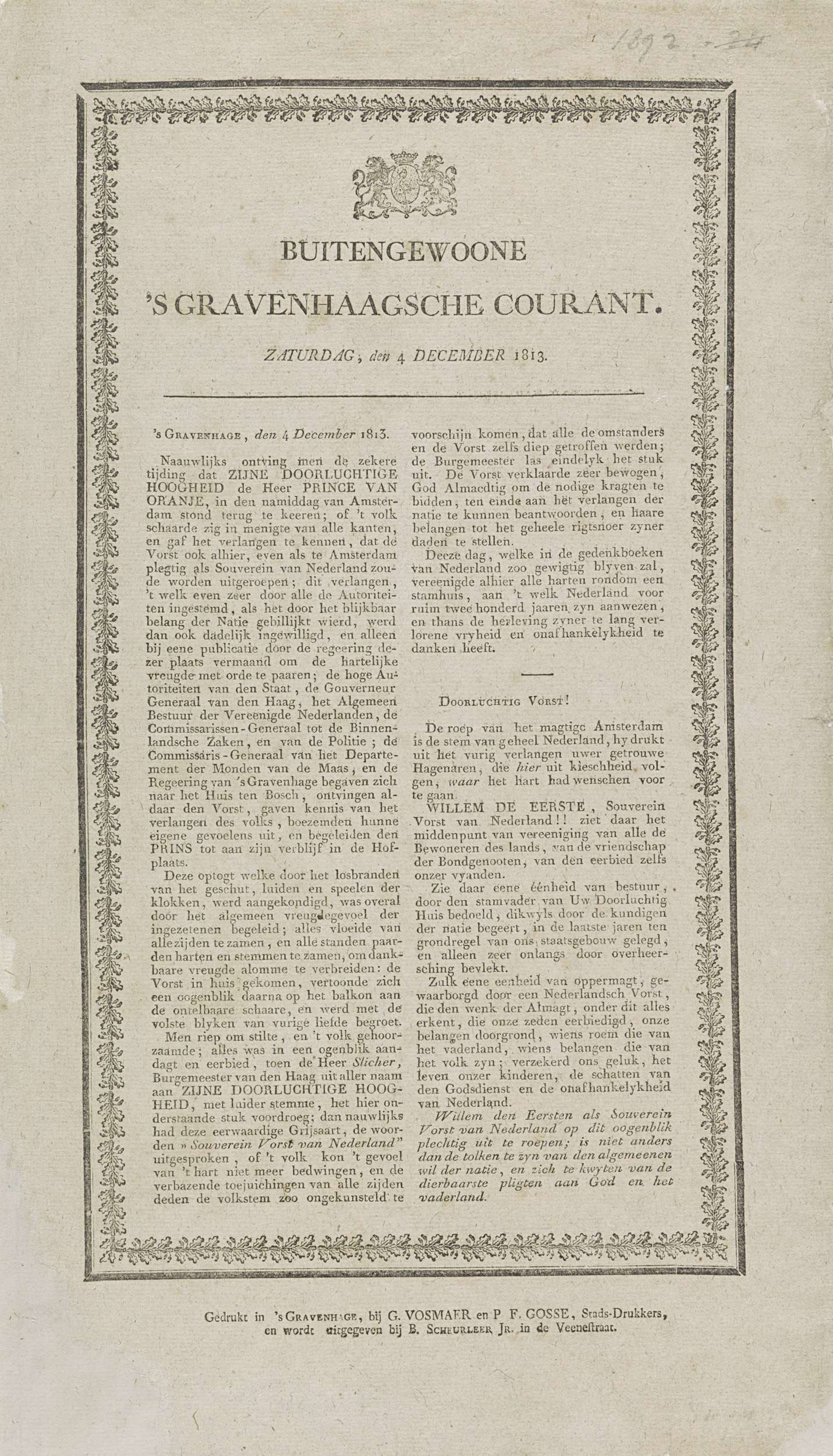 Proclamatie vanwege de prins van Oranje bij zijn intrede in Amsterdam, 2 december 1813