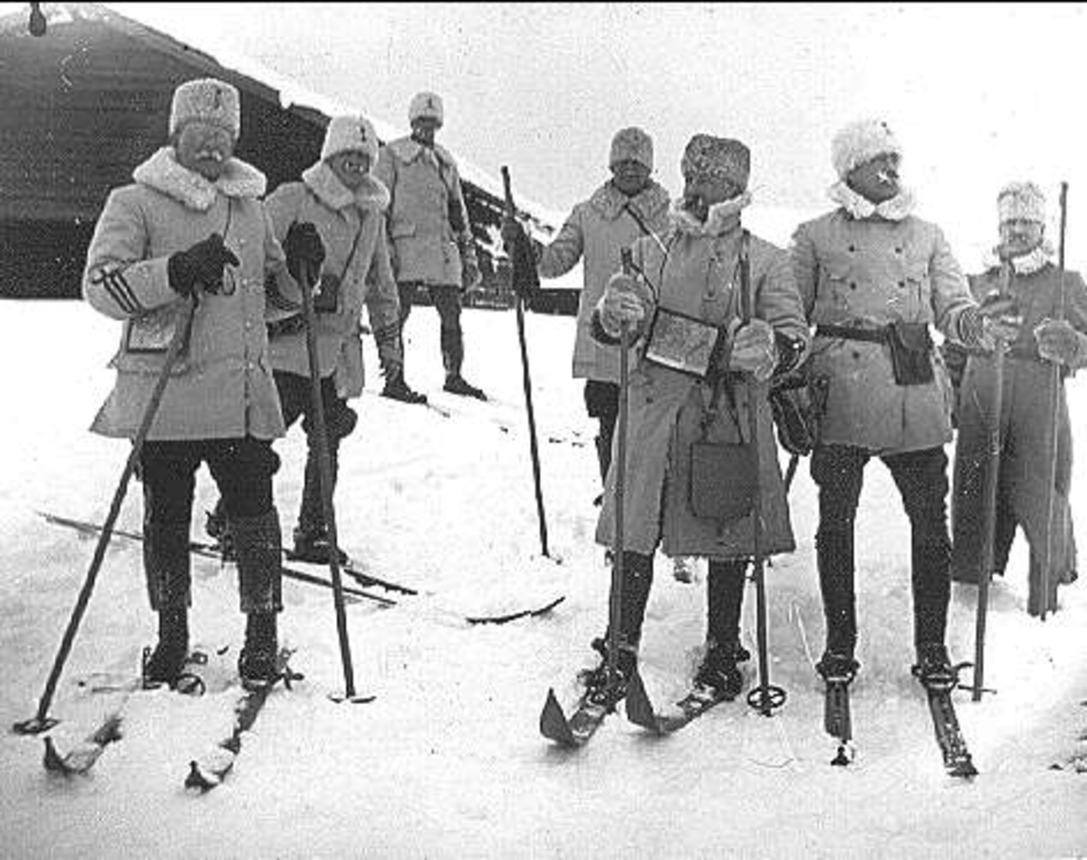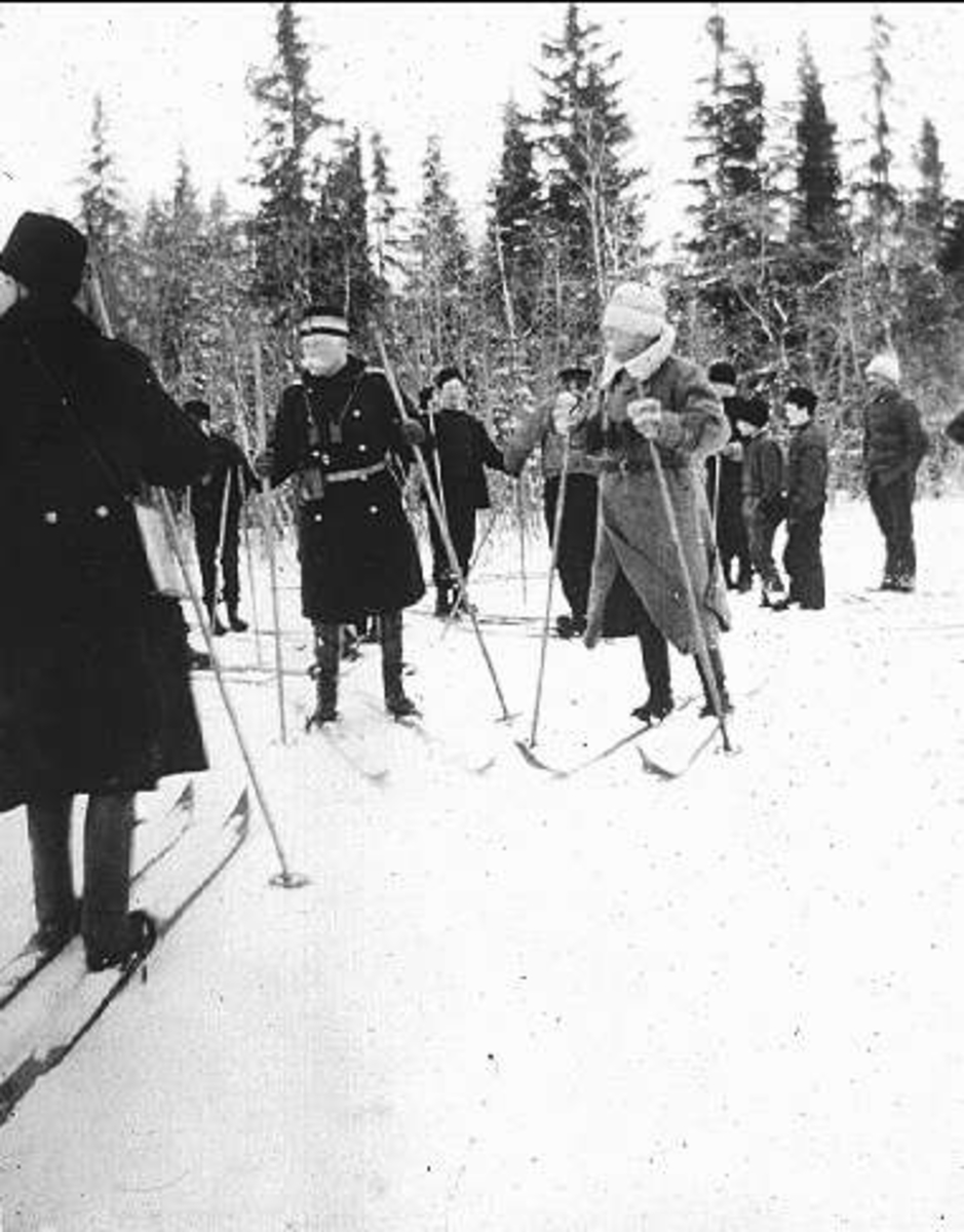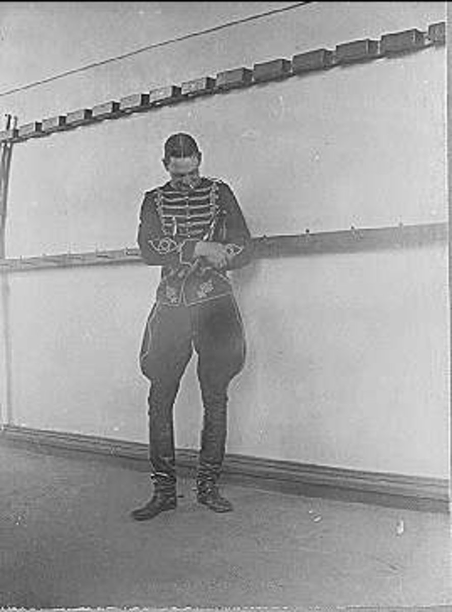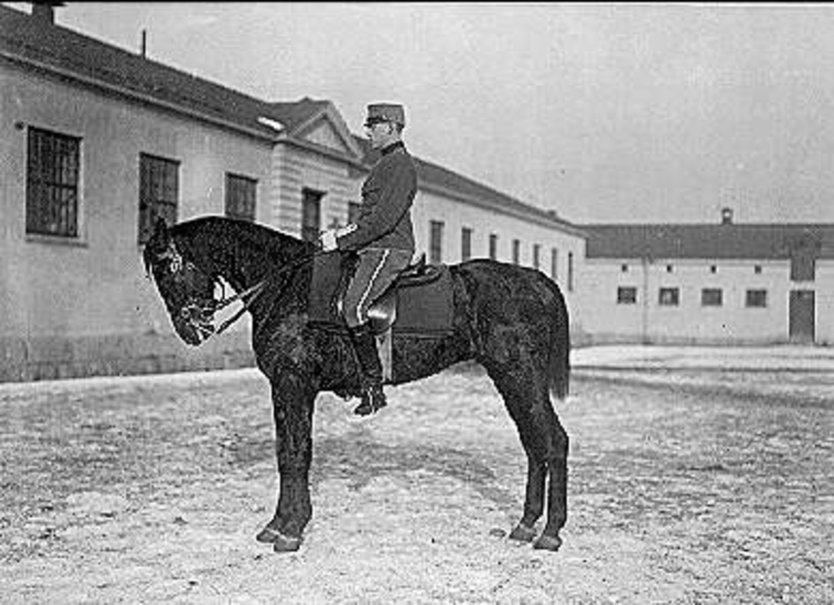 Kavalleriets fältövningar år 1905, 1906. Tolkryttare bakom vilken två husarer tolkade.