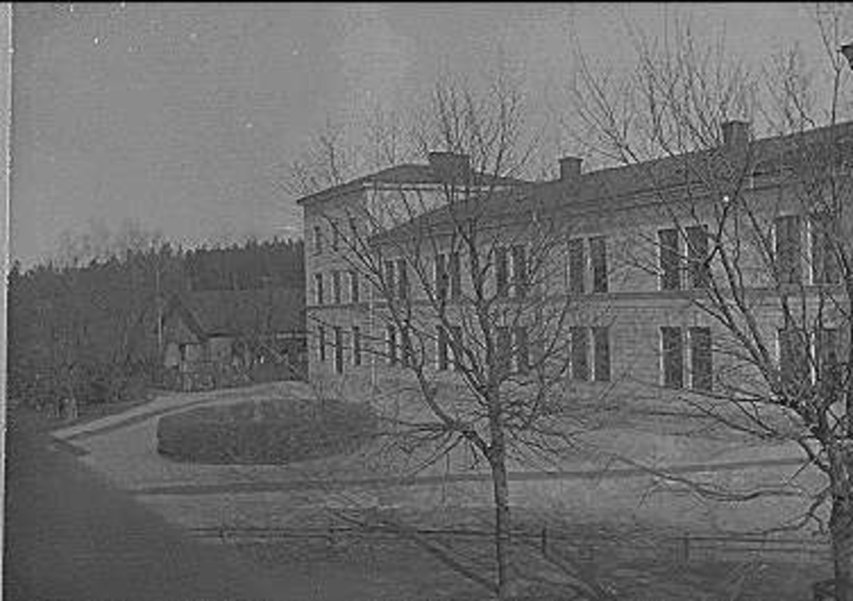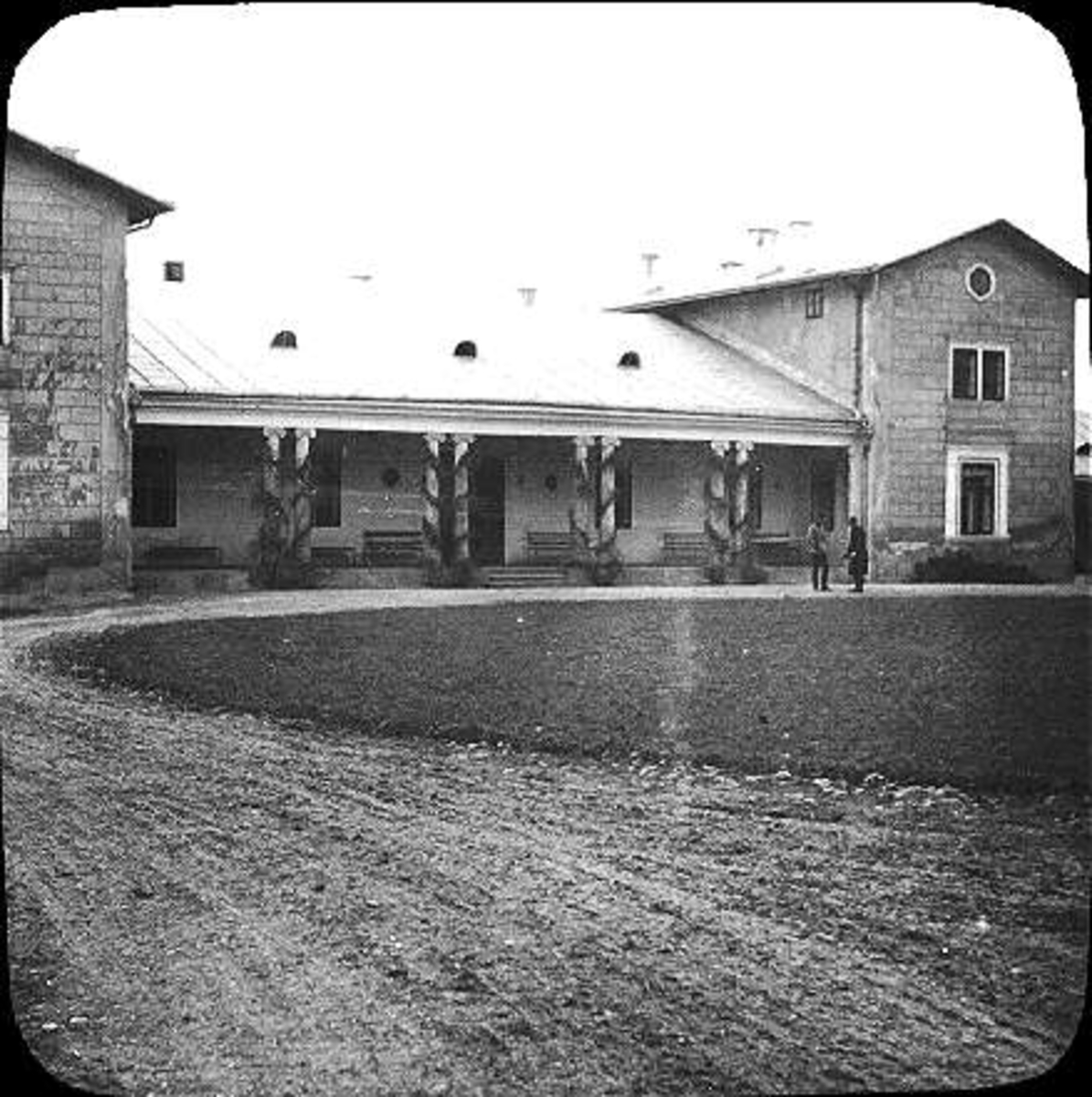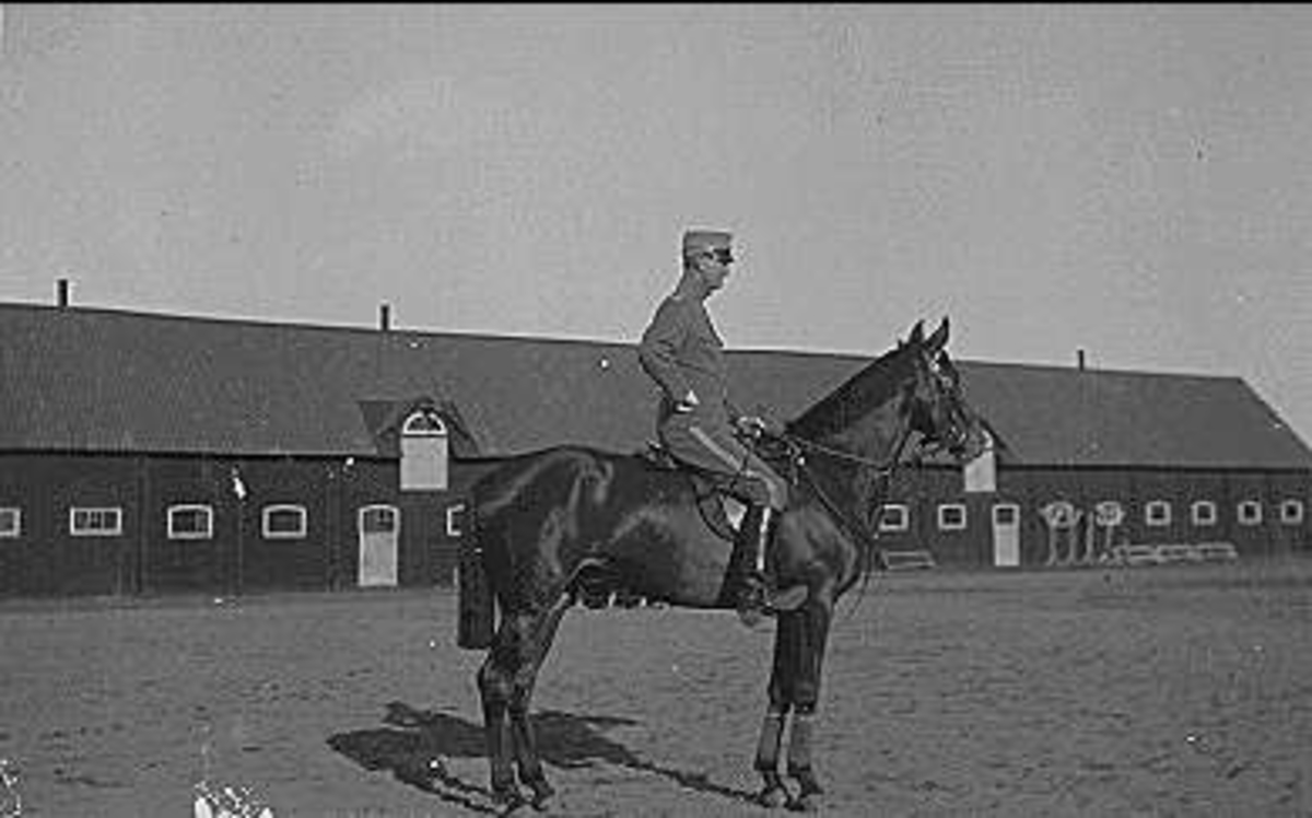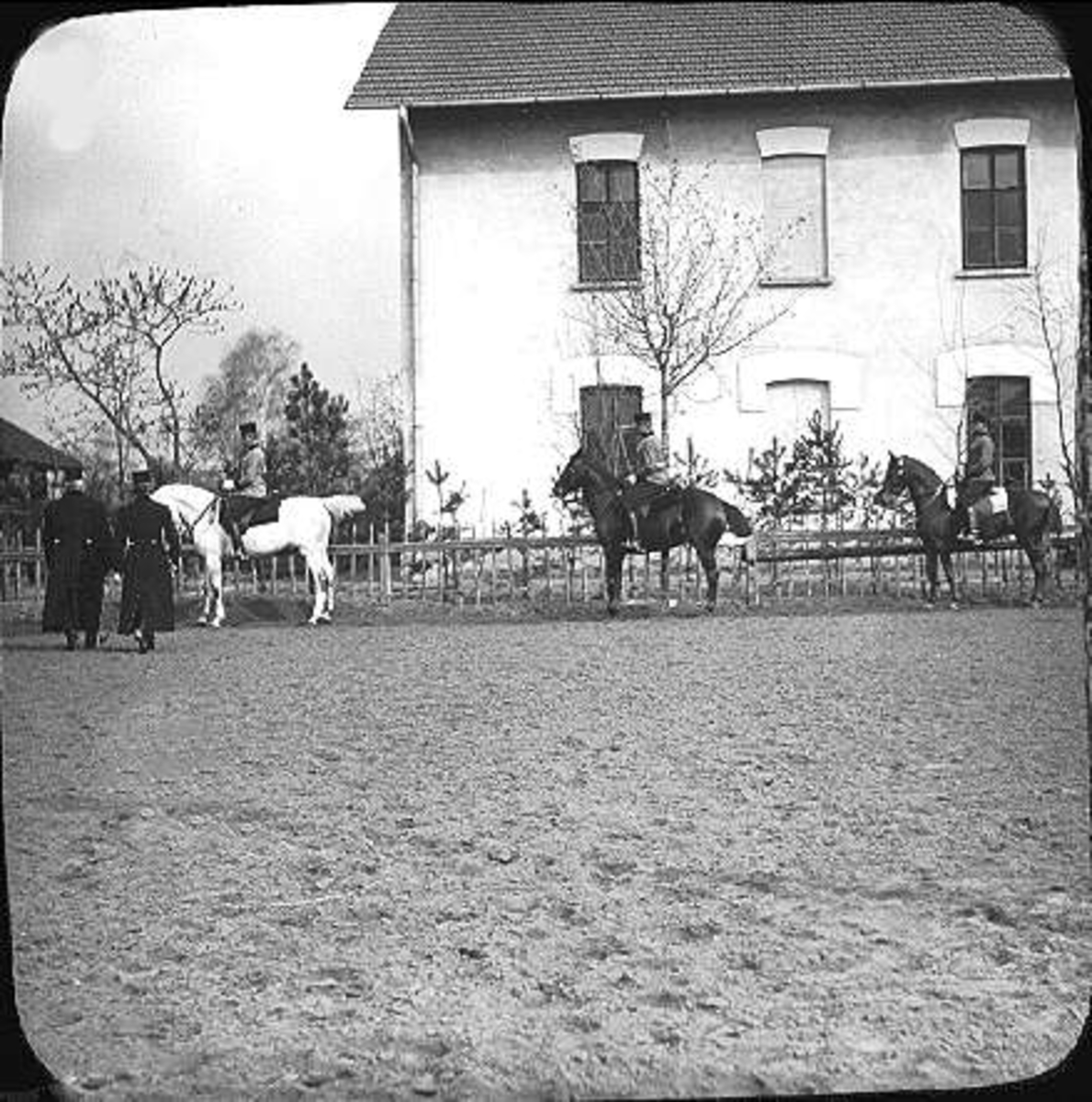 På ridplan med officersstallet till höger och Lilla ridhuset och vagnstallet till vänster.
