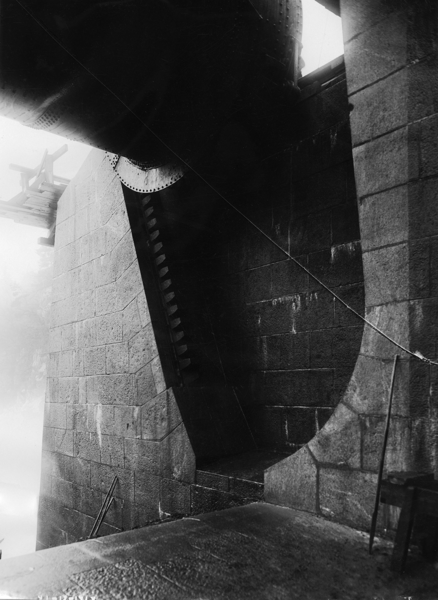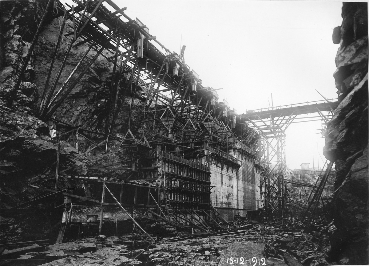 Ombyggnad av Trollhätte kanal, Trollhättan. Norra slusskammaren för sluss nummer två, sedd från väster.