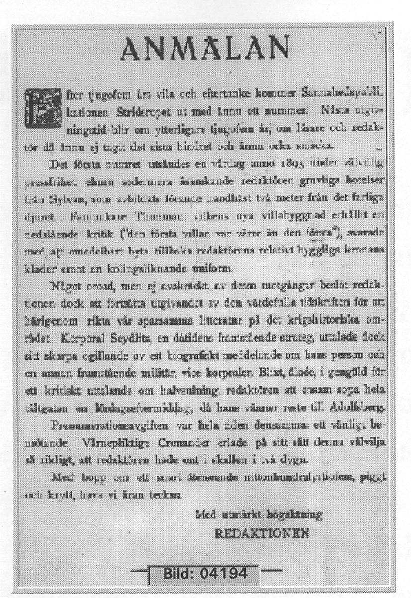 Invigningen av regementets minnessten på Sanna hed den 1 Augusti 1920. Volontären nr. 14 vid 4:e skvadronen K 3 Sven Littorin på stamhästen nr. 25 vid 4:e skvadronen "Påningen". Sven Littorin, senare Major vid K 3.