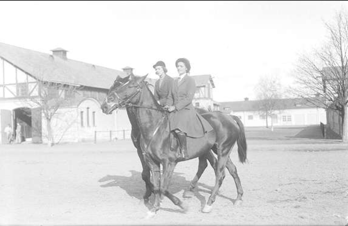Fru Hedvig Odelberg, maka till ryttm Wilhelm Odelberg, rider ut på en ridtur tillsammans med en väninna.