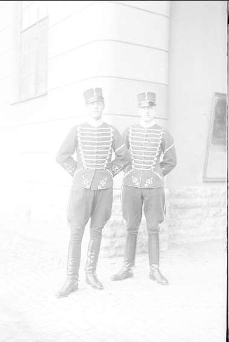 Två livhusarfurirer (två skolstreck på ärmen) i uniform m/1895.
