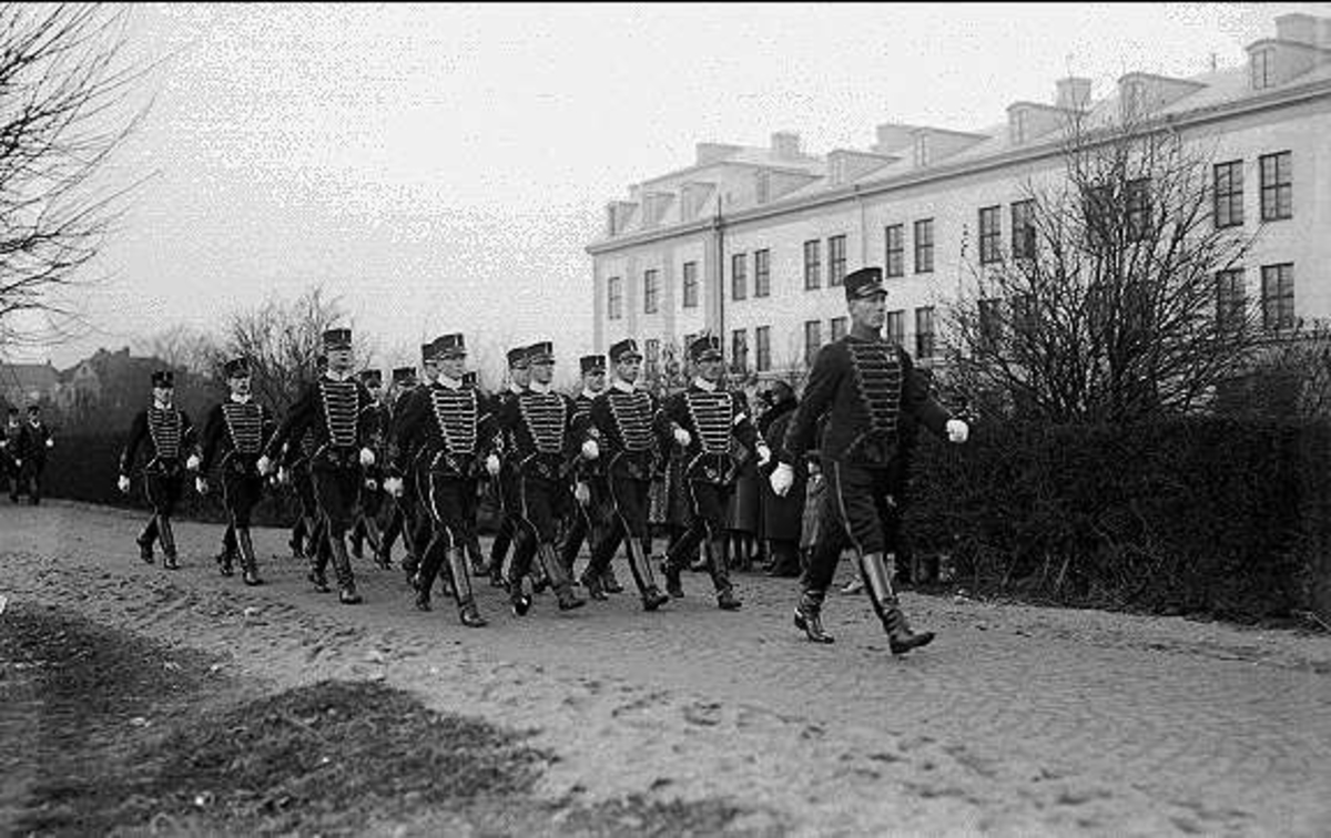 Officersaspirantskolan vid K3 i Skövde 1929-30. Hemkomst till kasern efter korum i Sankta Helena kyrka 6.nov 1929.