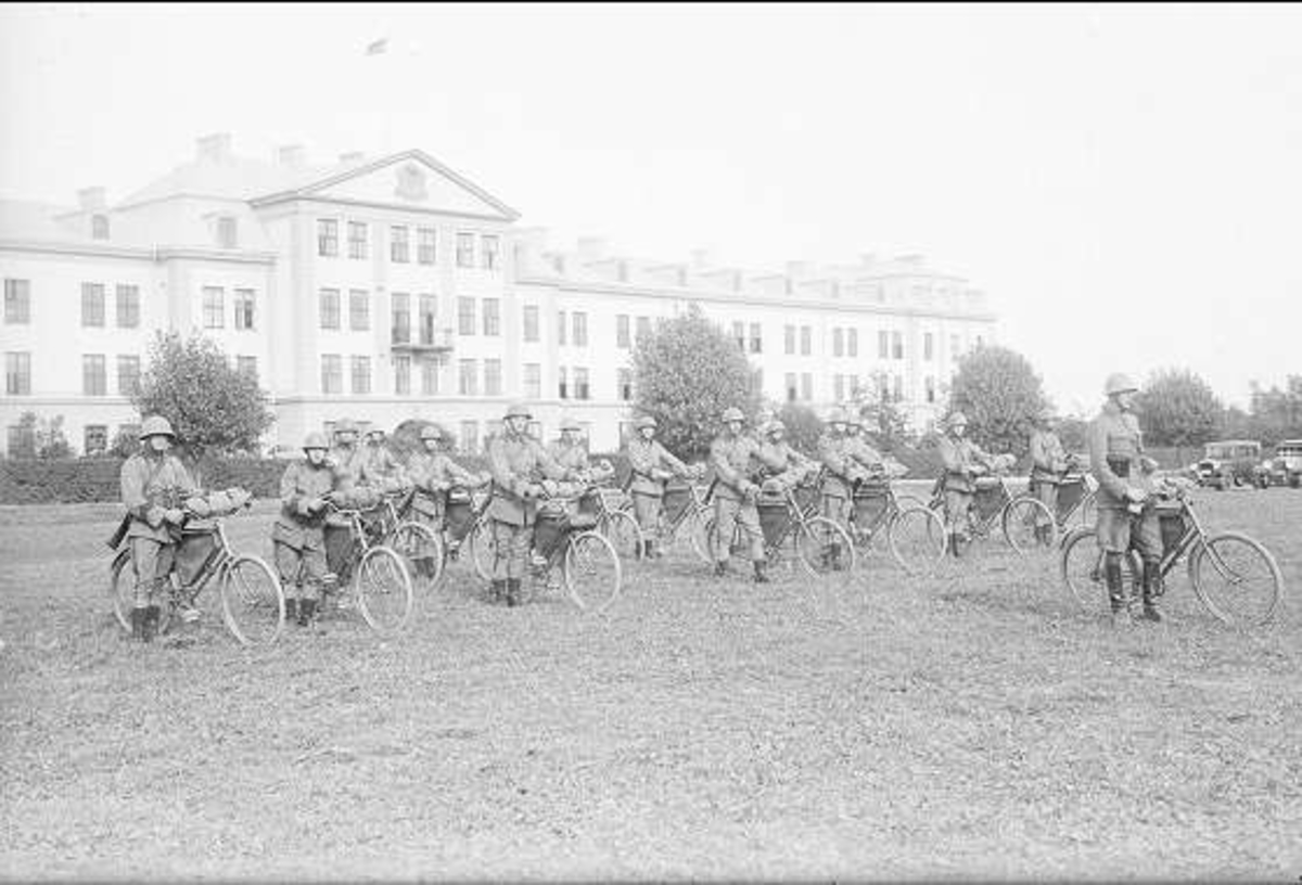 Försök med cykeltrupp, motorcykelpatrullen ingick i cykelskvadron. Antagligen mc/m/monark ("Albin").