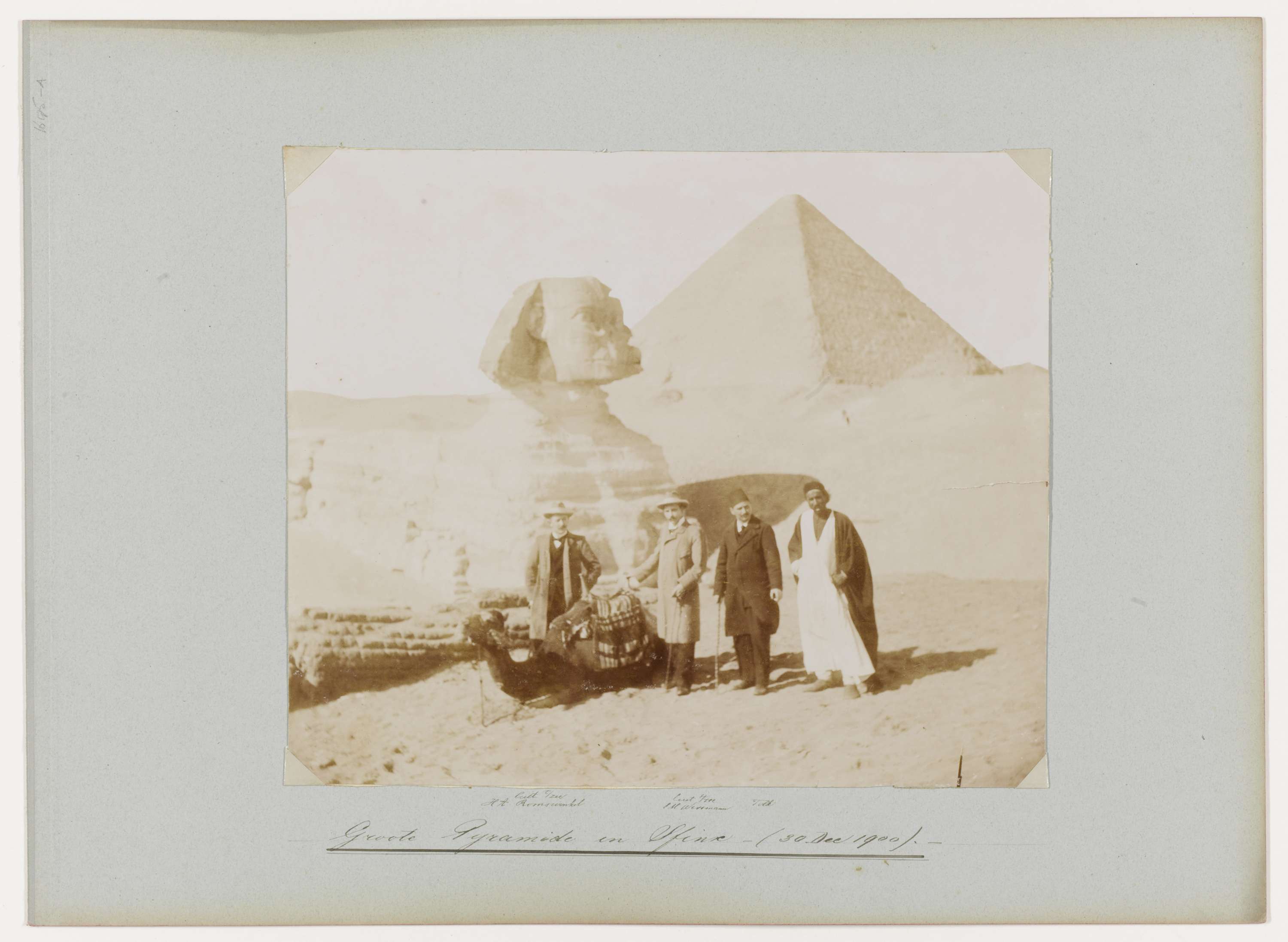 E.M. Wissman en H.A. Romswinkel voor grote pyramide en sfinx te Gizeh, 30 Dec 1900