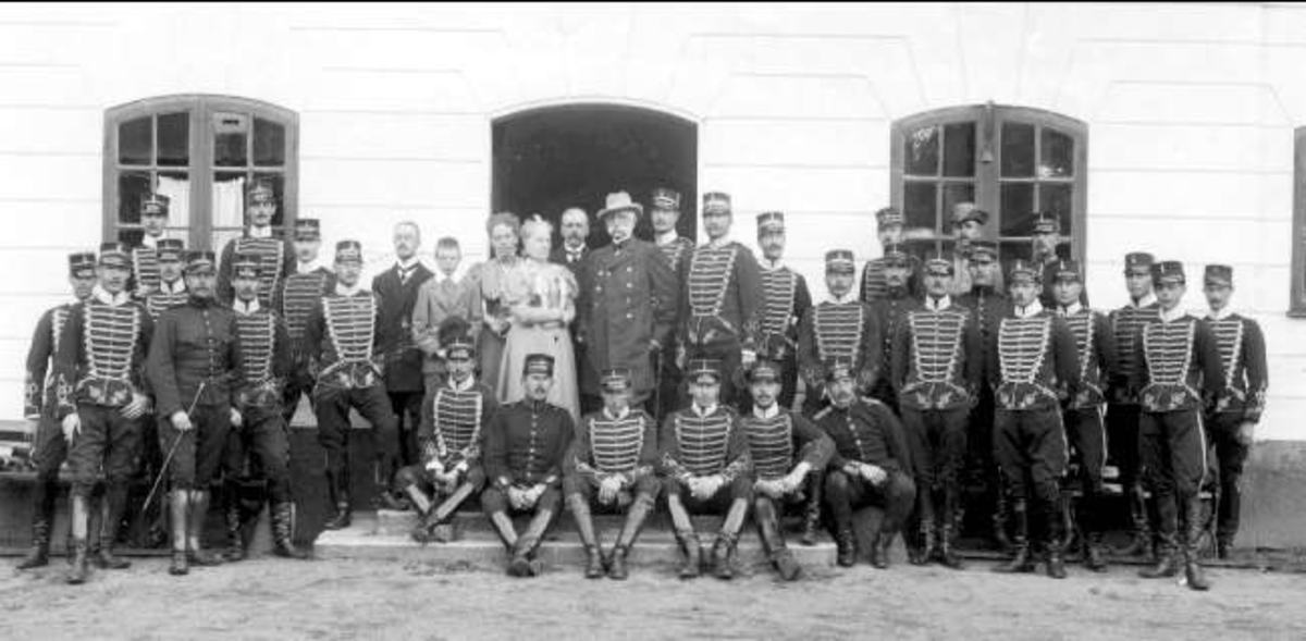 Livhusarernas officerkår uppvaktar Riksmarsalken Fredrik von Essen på Kaflås den 30/7 1911.