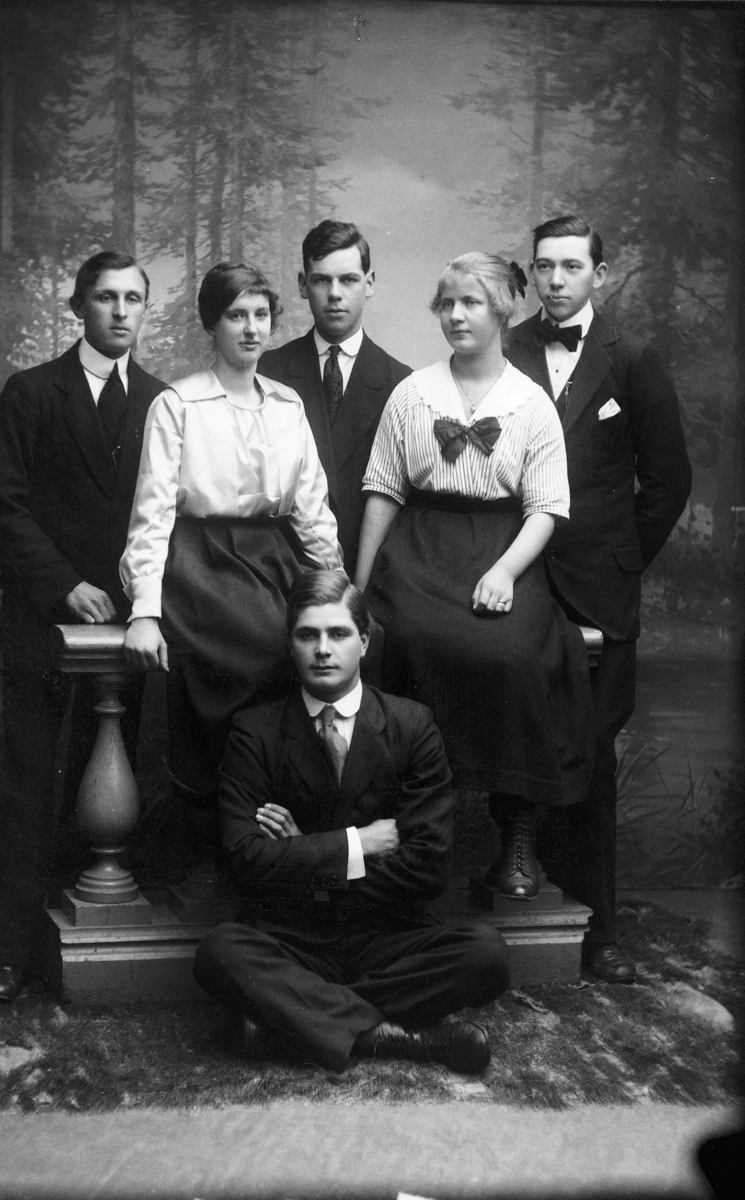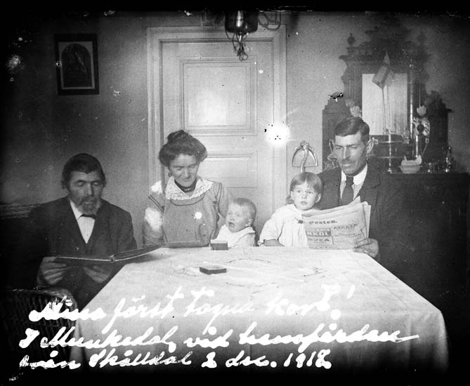 Skrivet på bilden: "Mina först tagna kort! I Munkedal vid hemfärden från Skålldal 2 dec. 1918."