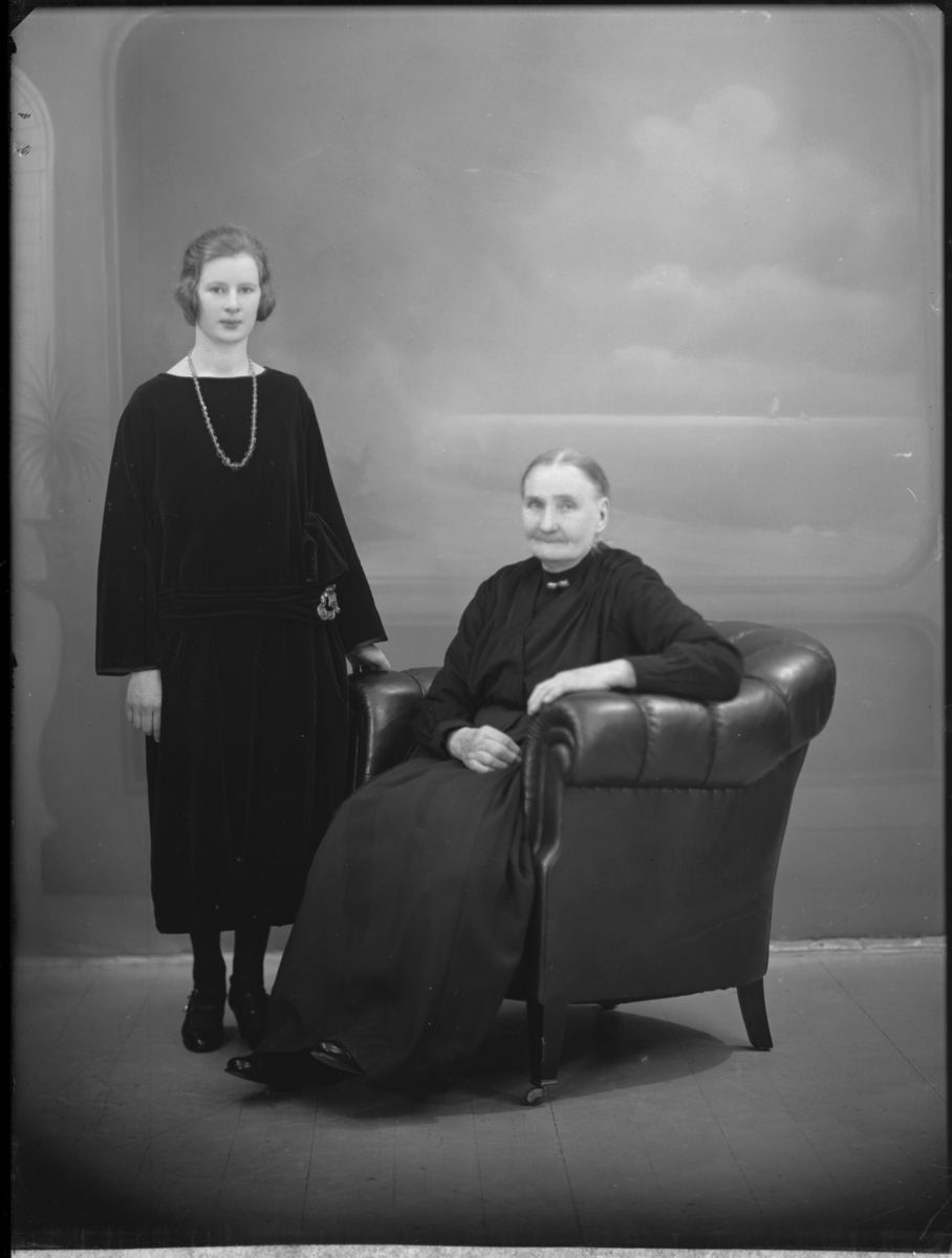 Fr. vän: Asta Henriksson Holgersson f. 1916, Dora Henriksson f. 1888, Lina, Berta Henriksson Dahlborg f. 1892, Sofia Åller Henriksson f. 1852 Jenny Henriksson Lindqvist f. 1894".
